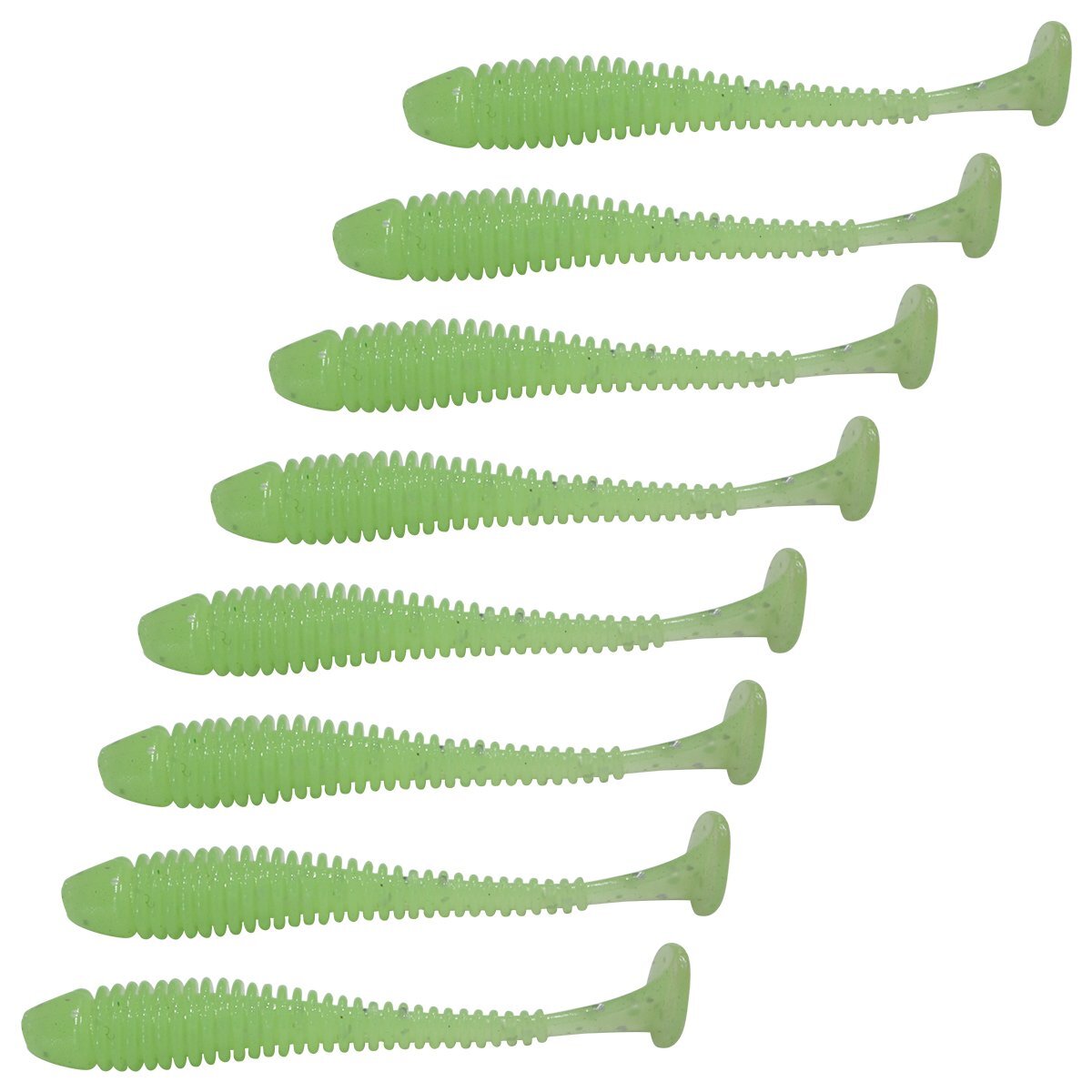 【新品即納】シャッドテール ジグヘッド スプリット ソフトルアー 2.3インチ 58mm/5.8cm 8個 蛍光グリーン ワームセット プルプル震える