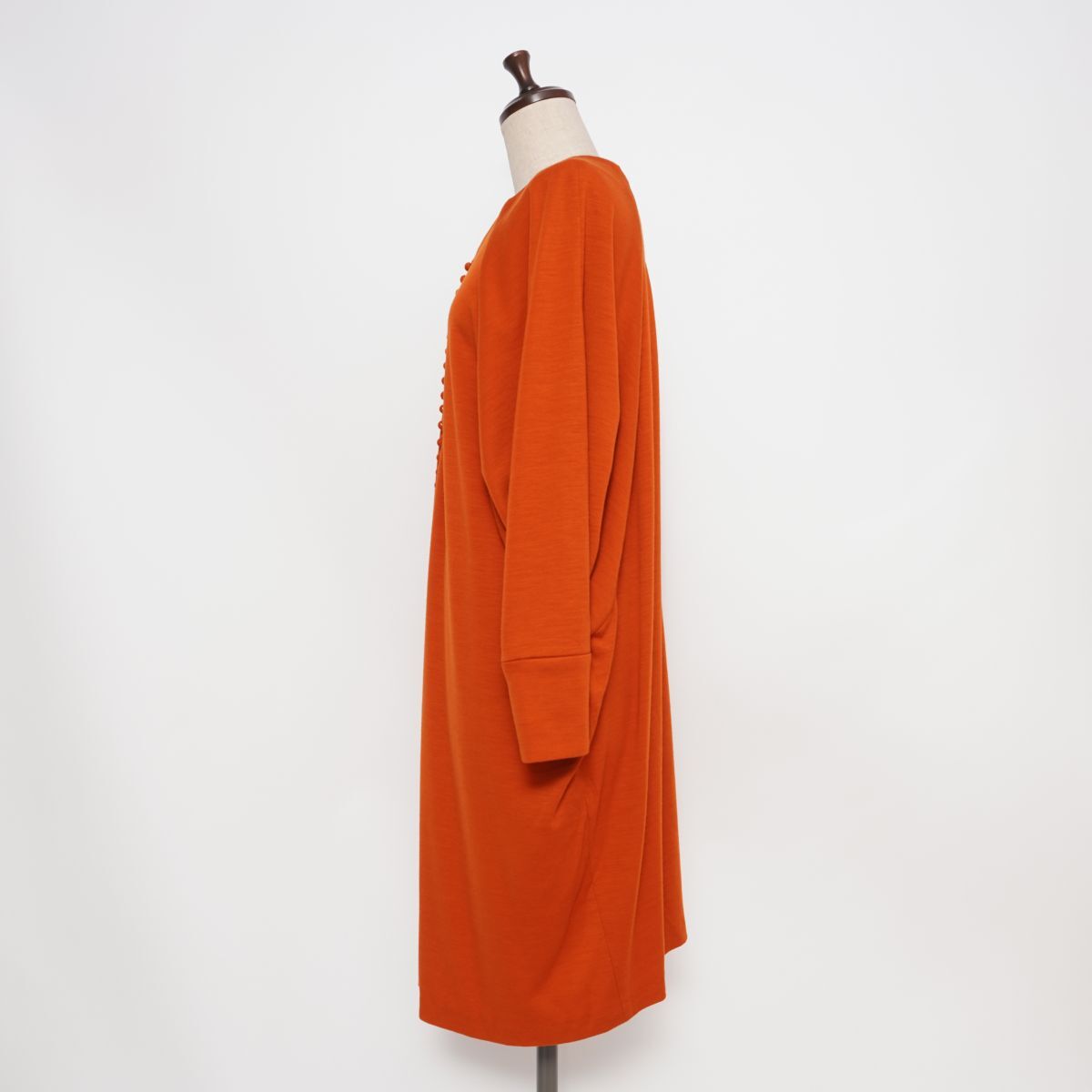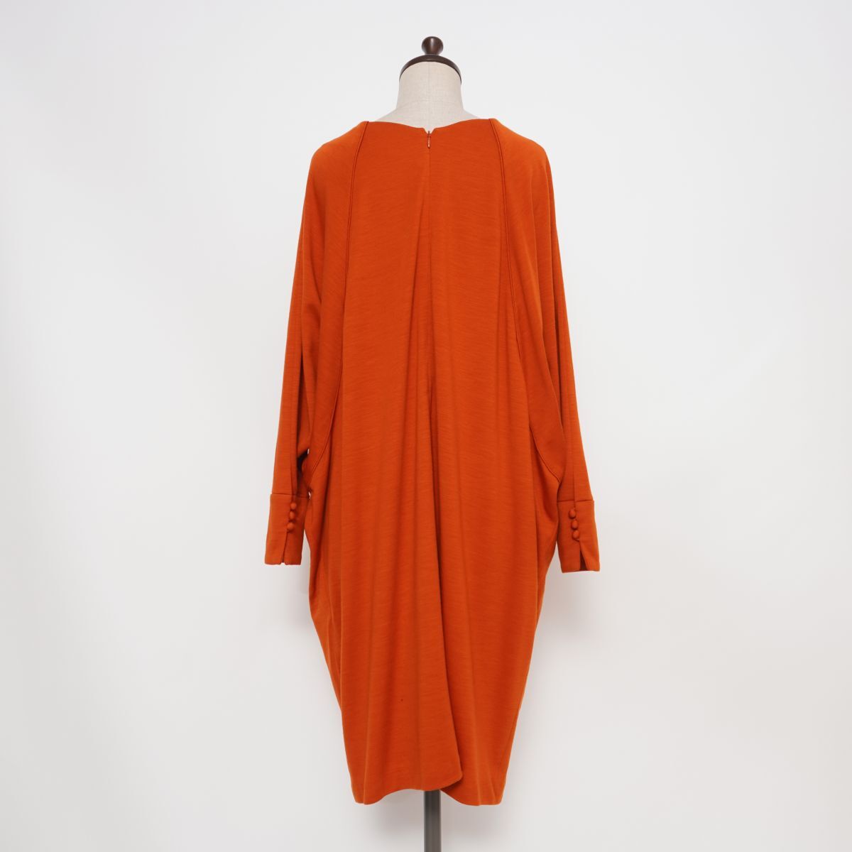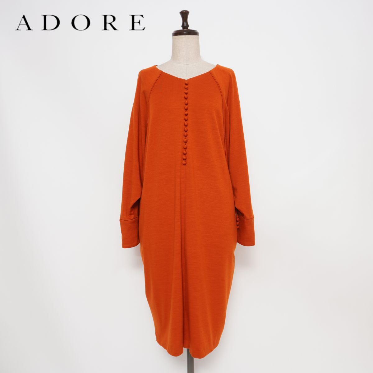 美品 ADORE アドーア ウールニットブラウスワンピース ノーカラー ドルマンスリーブ 長袖 ミモレ丈 レディース オレンジ サイズ38*GD228