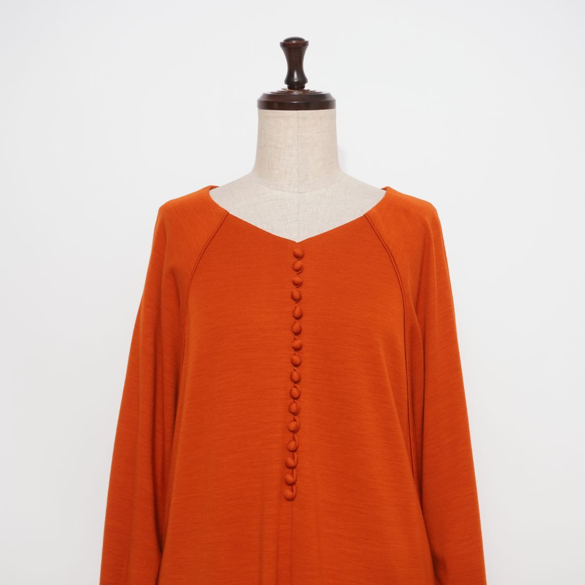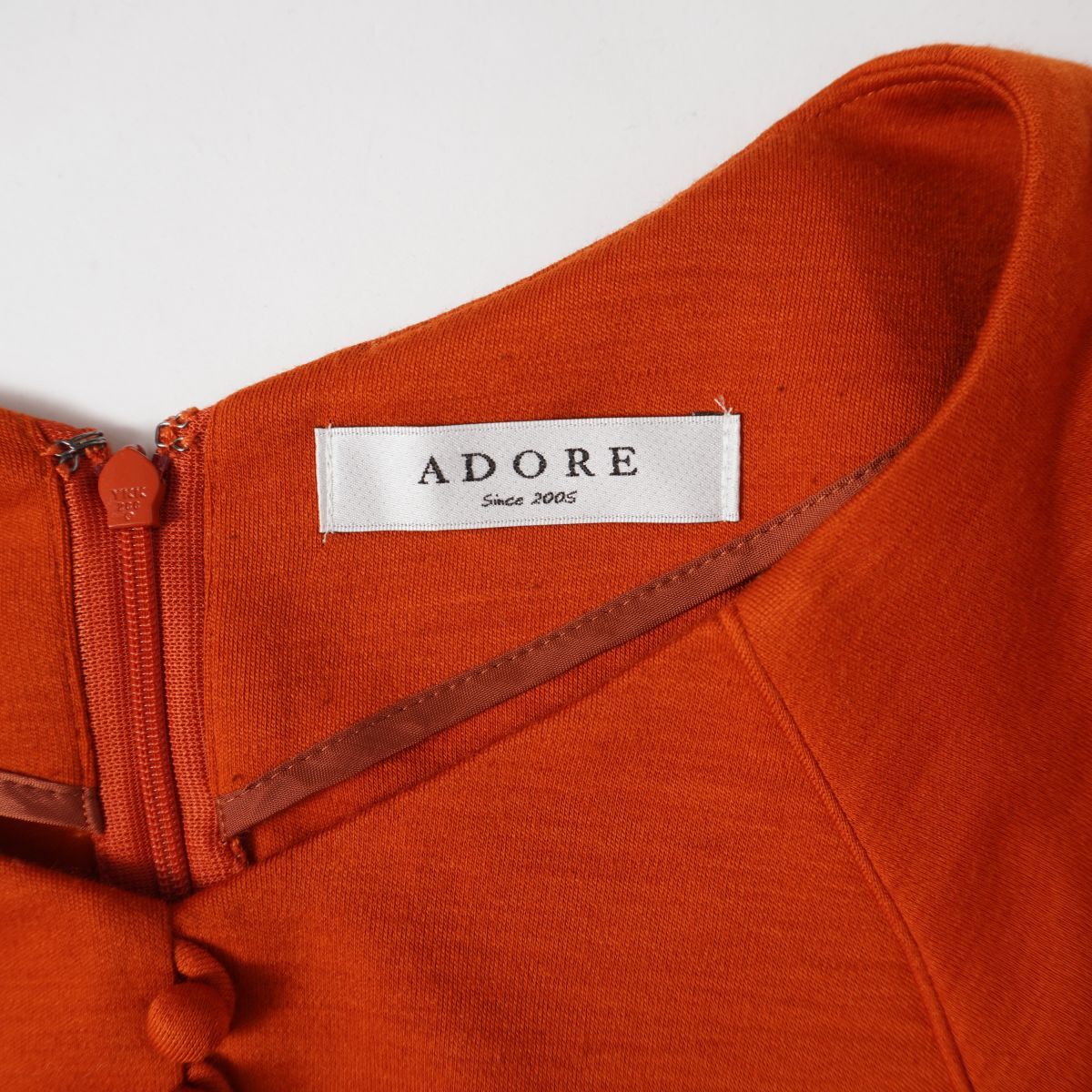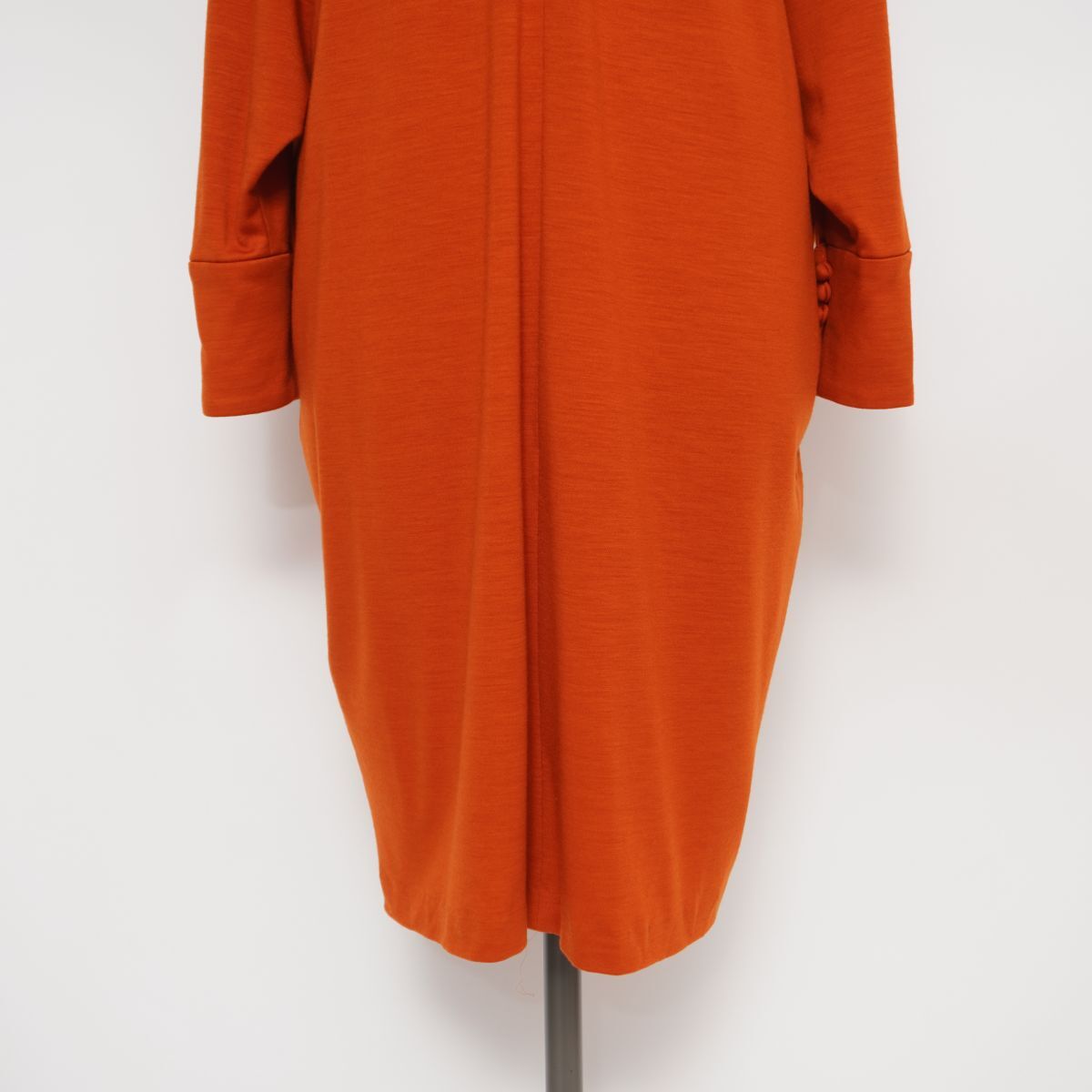 美品 ADORE アドーア ウールニットブラウスワンピース ノーカラー ドルマンスリーブ 長袖 ミモレ丈 レディース オレンジ サイズ38*GD228