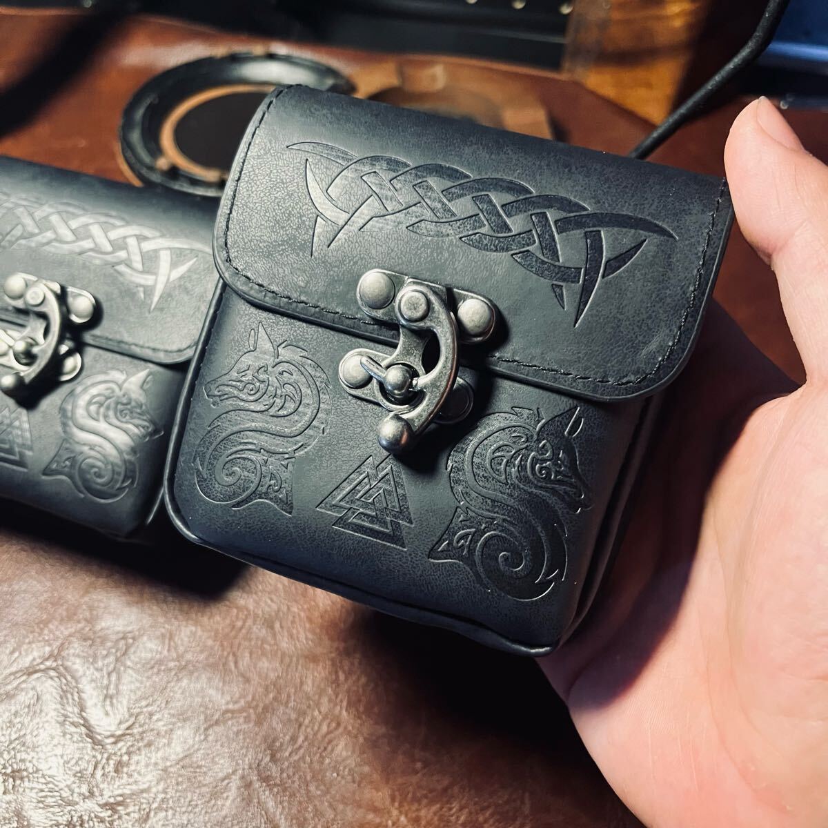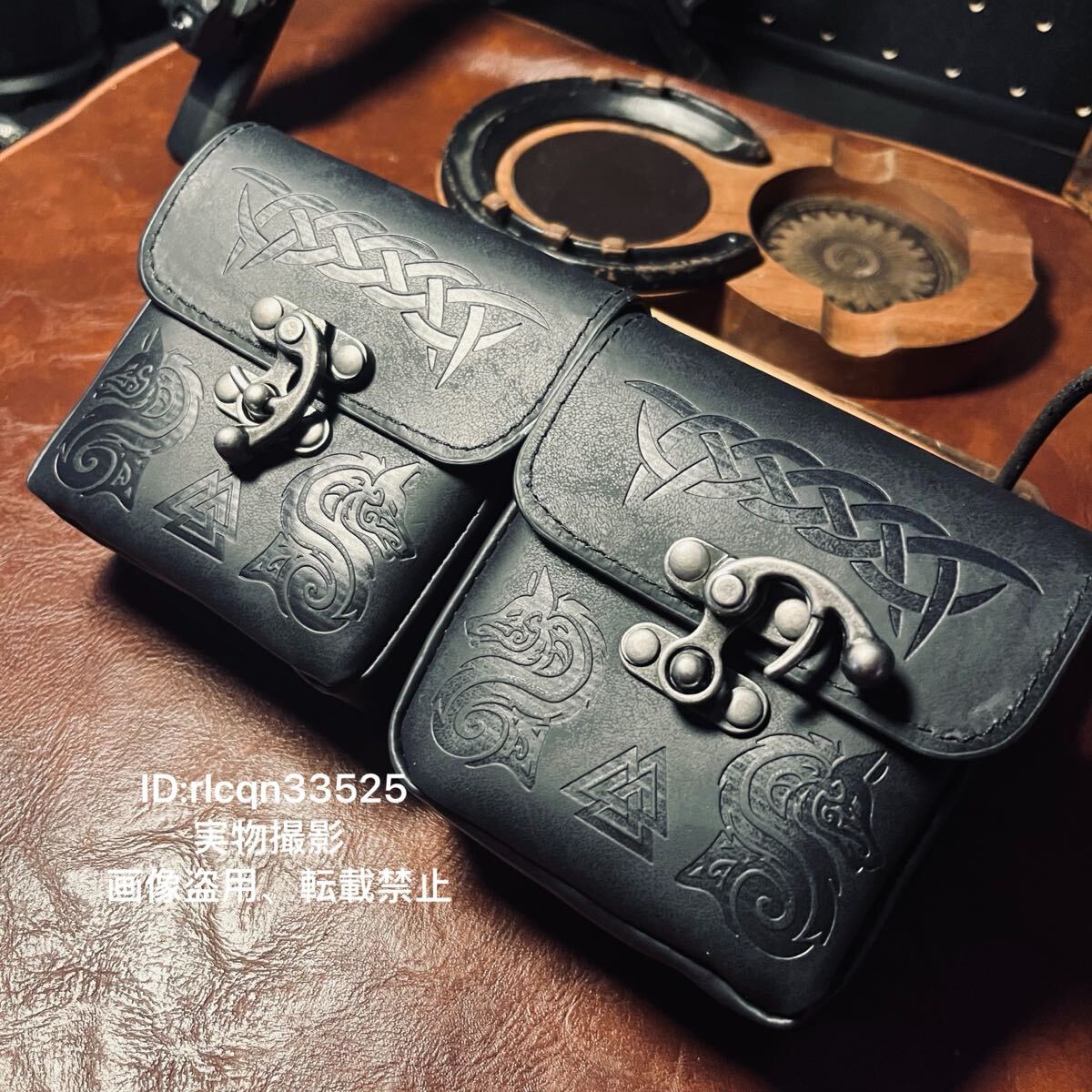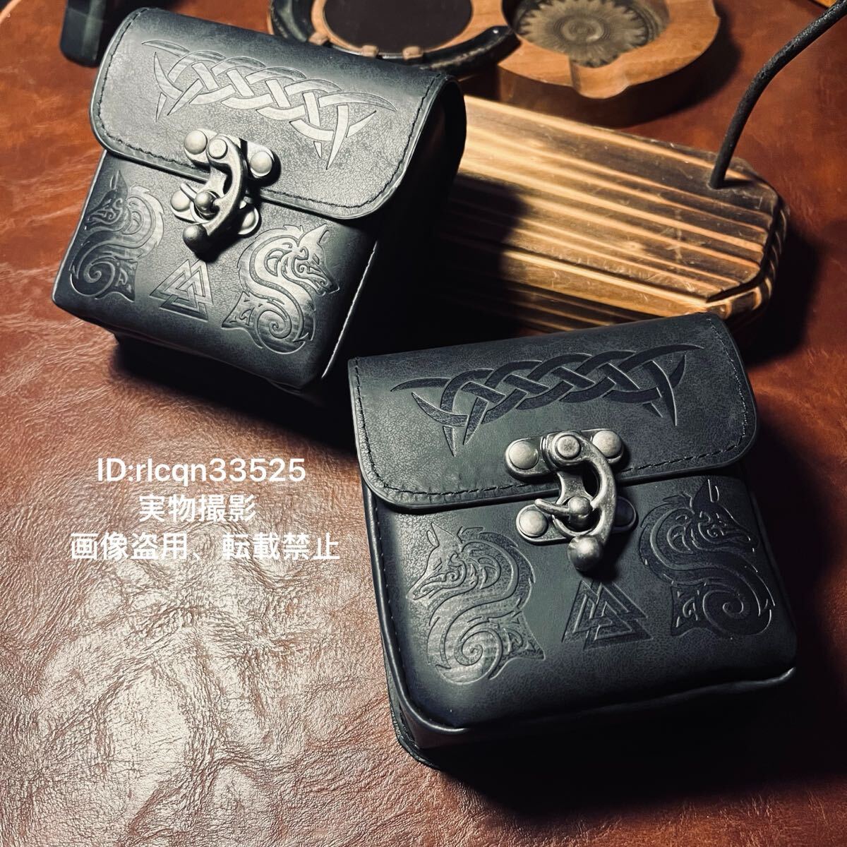 2点セット アウトドア用 小物收納ケース 革袋 革収納 小物入れ キャンプ 野外登山 10.5cmx11cmx4cm