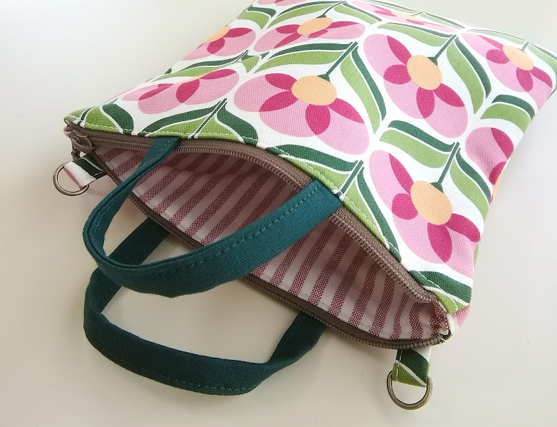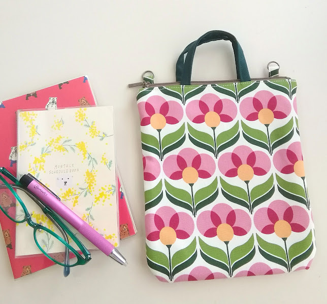 ハンドメイド〈サコッシュにもなる〉ちいさな手提げ/chibi bag 北欧/レトロフラワー〈21×18〉※ショルダー紐は付属しません