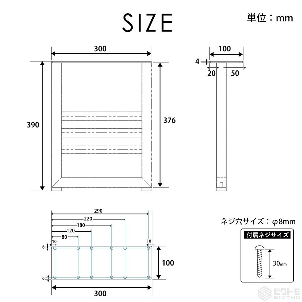 付属品 | 天板取付用ビス | 特徴 | アイアンレッグはどんなスタイルにも溶け込みやすく | 注意 | ・テーブル用天板は付属しません。 |