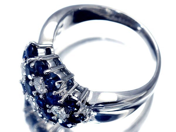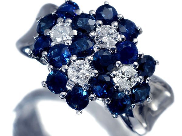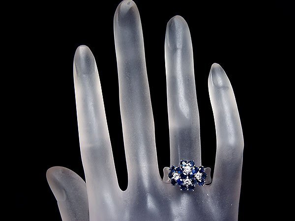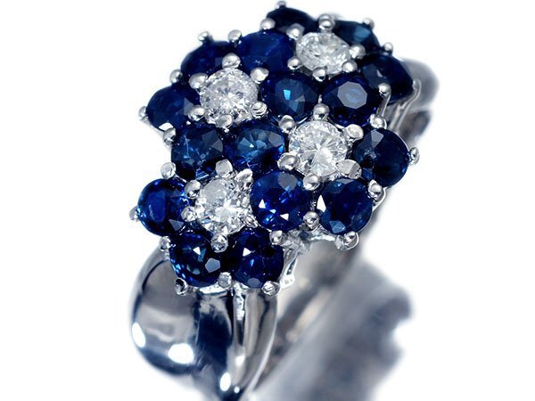 豪華なフラワーデザインに良質天然ブルーサファイア総計1.85ct&天然ダイヤモンド総計0.32ctを素敵に宝飾した、高級Pt900リングを1円から特別大放出致します!