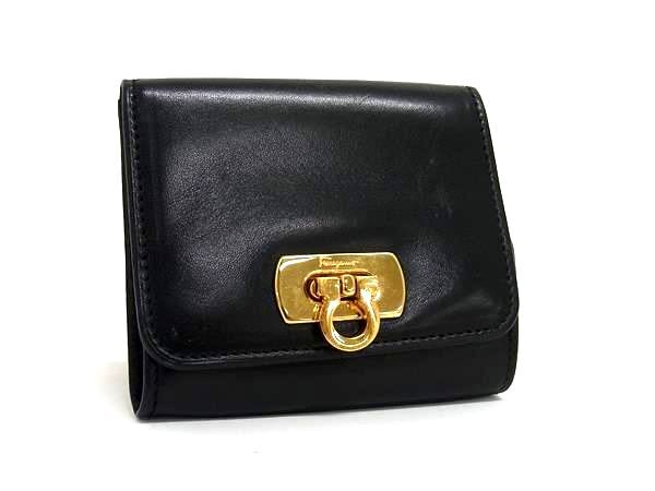Salvatore Ferragamo フェラガモ 221557 ガンチーニ レザー 財布 コインパース コインケース レディース ブラック系 DH9412
