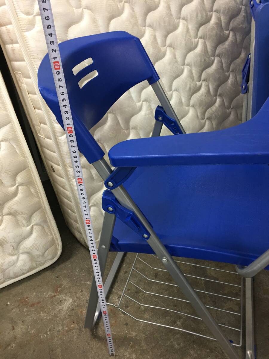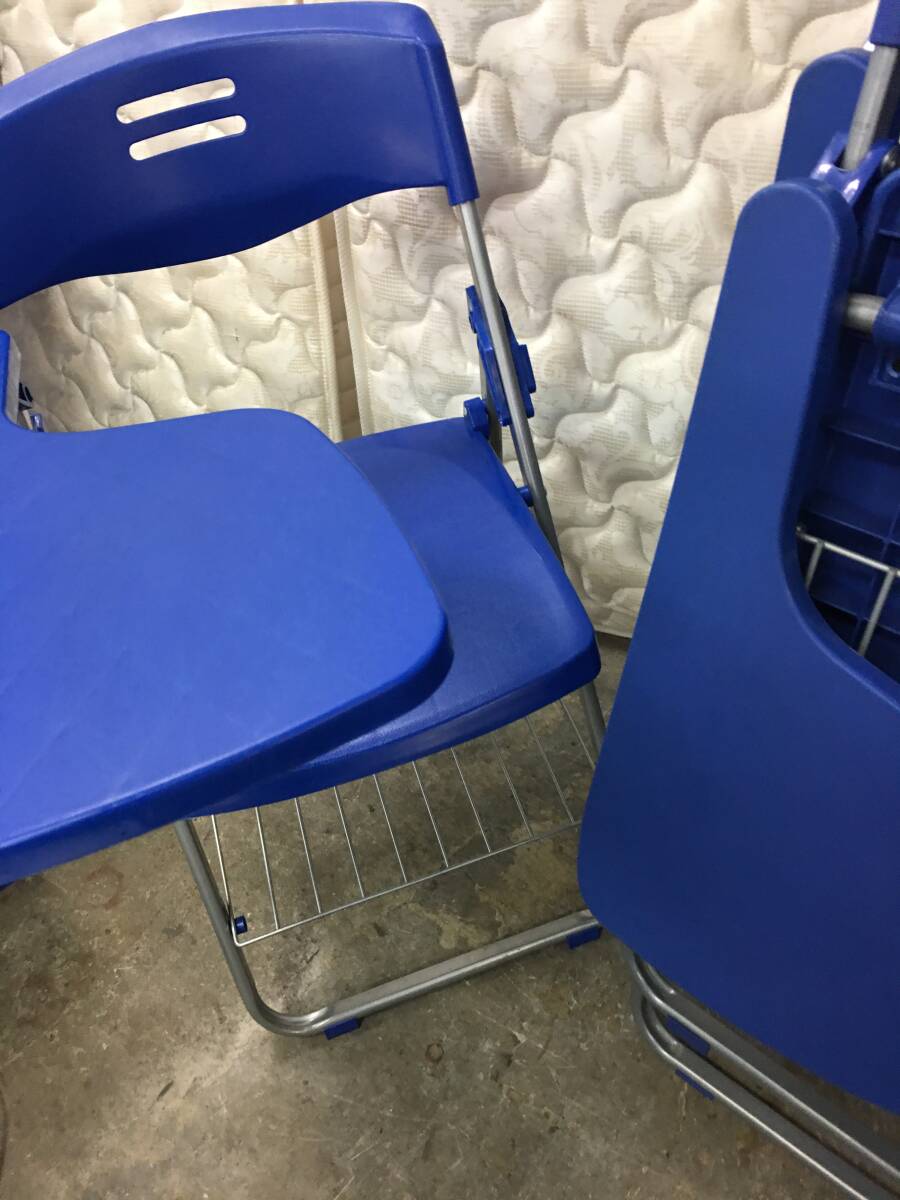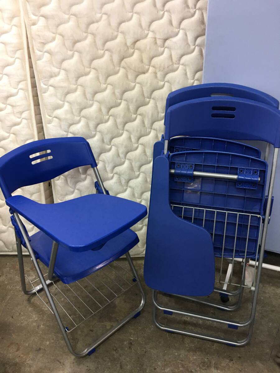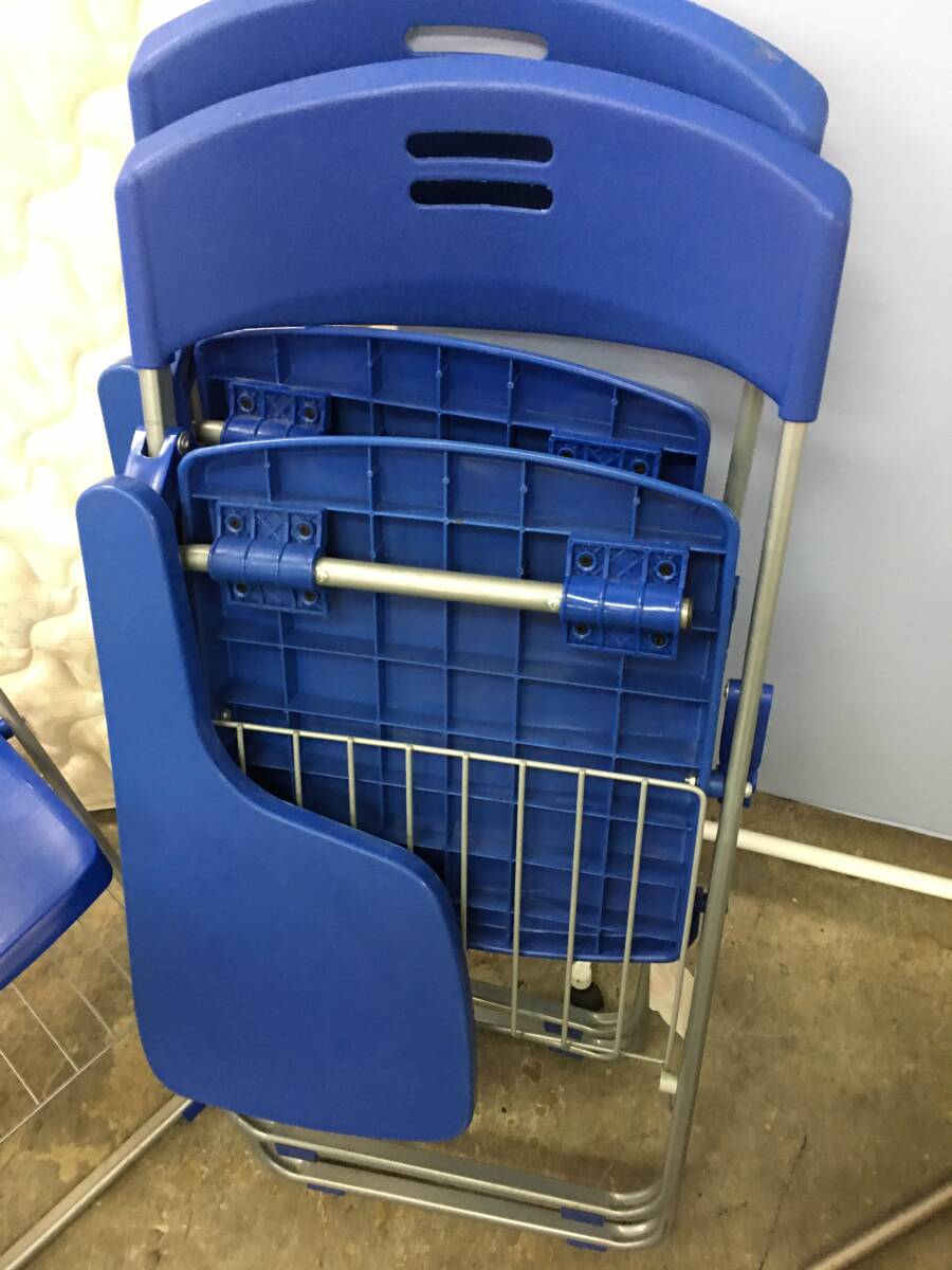 nt251002-002Z テーブル付き イス 青 荷物置き 3脚セット 折り畳み椅子 コンパクト パイプ 椅子 会議 店舗 学校 中古品