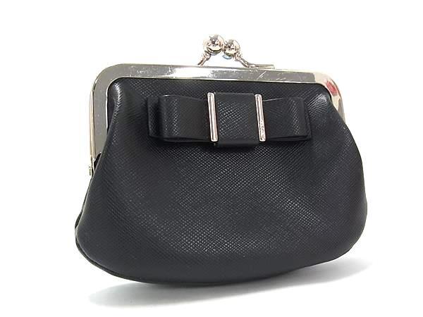 ■美品■ COACH コーチ レザー リボン がま口 コインケース コインパース 小銭入れ レディース ブラック系 DH9516