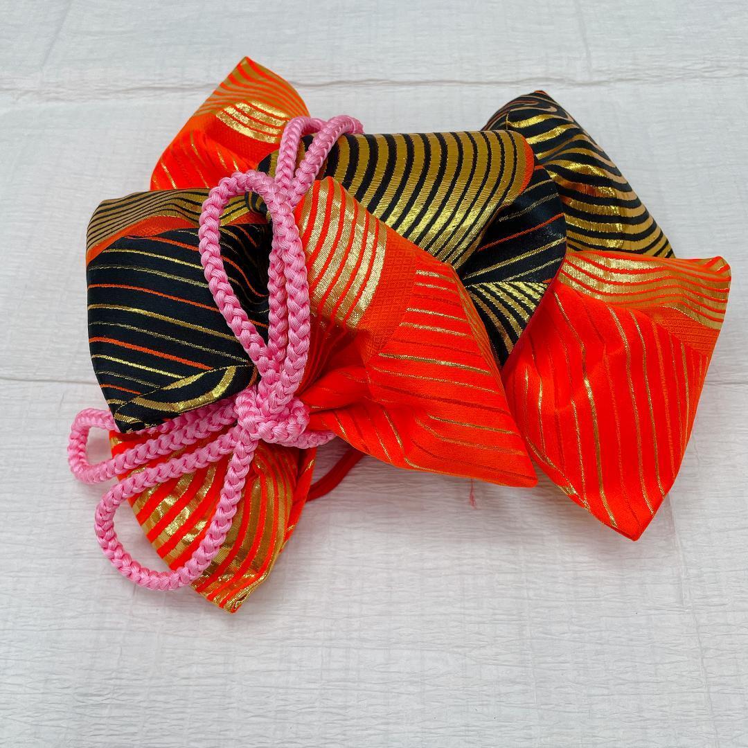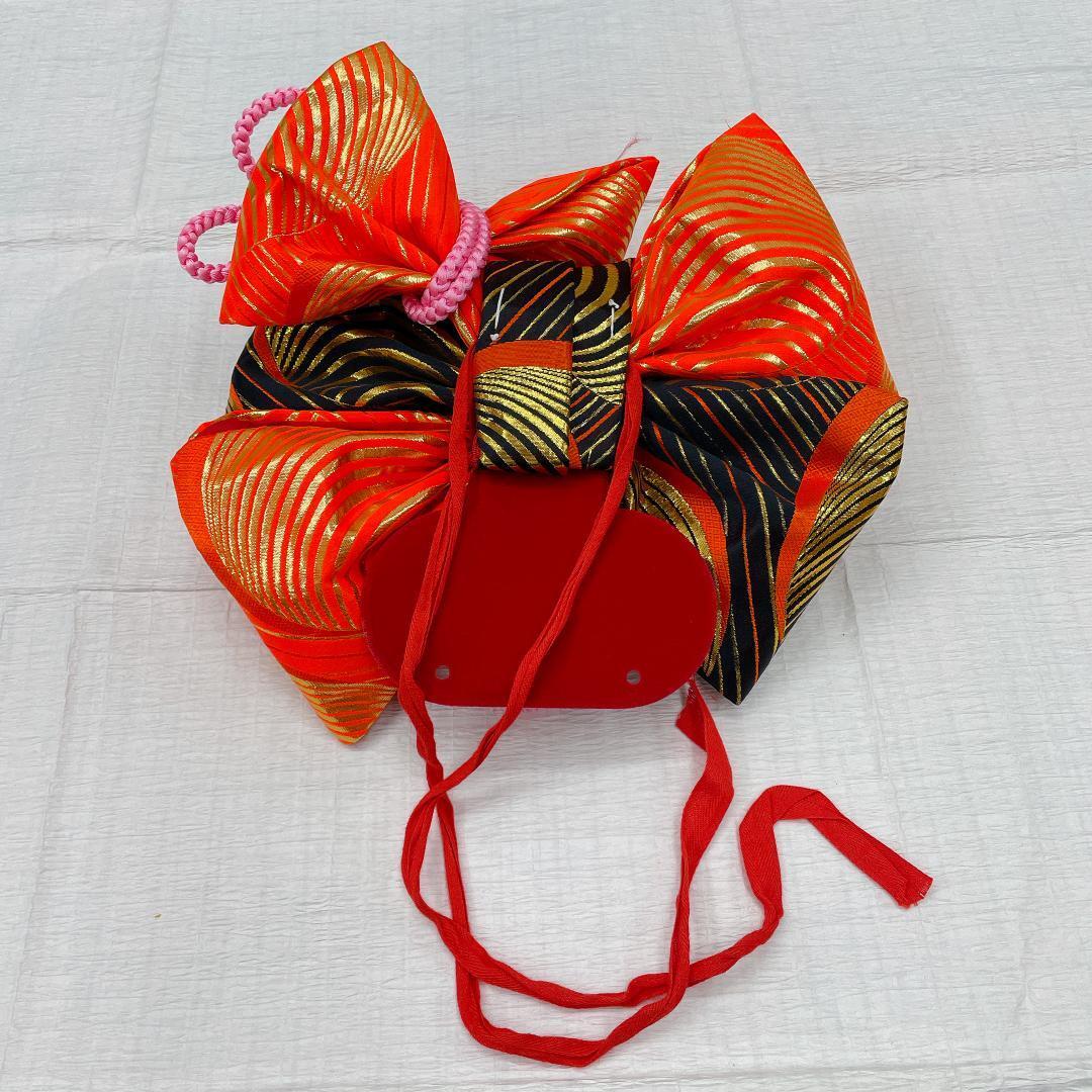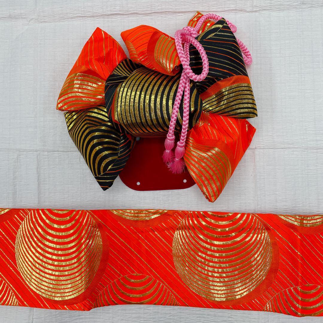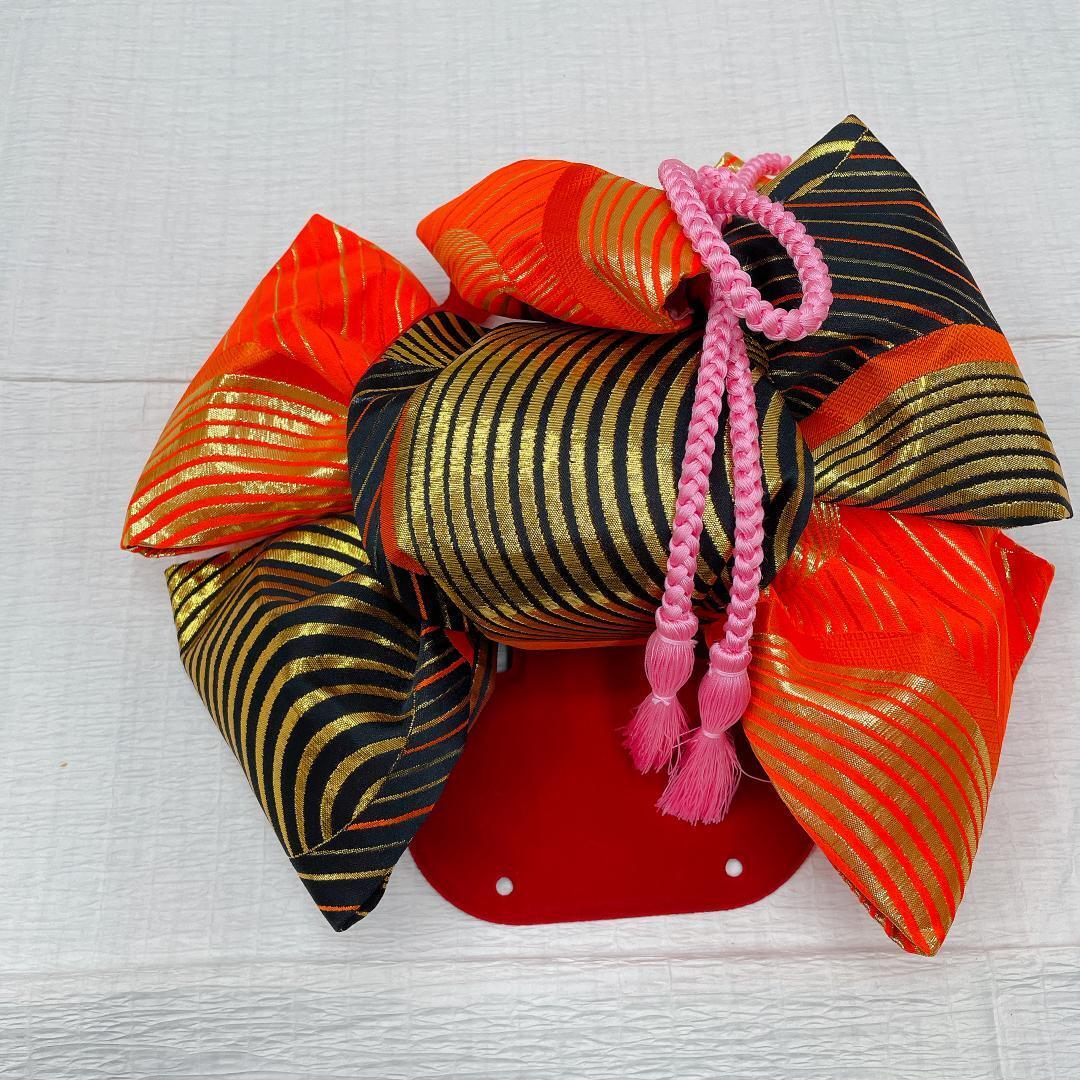 作り帯は、黒色、オレンジ色、金色ラメ糸で、キラキラします。