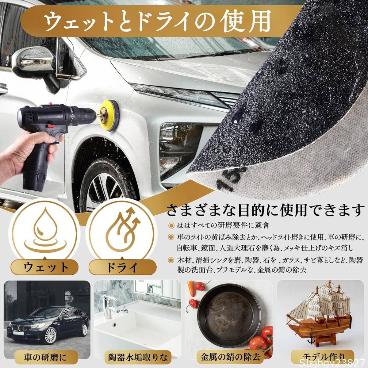 【幅広い使用用途】黄ばんだヘッドライトを修理するために利用しました、ヘッドライト磨きに使用、車のバンパーでパテ研磨、車の研磨に、自転車、鏡面、車&バイクのメンテナンス、木材や金属板で、金属の錆の除去、板金塗装、清掃シンクを磨、陶器、石を 、ガラス、木製家具の表面処理、木工用生地研磨、サビ落としなど、狭い範囲の磨きに便利です、陶器製の洗面台、プラモデルなどに