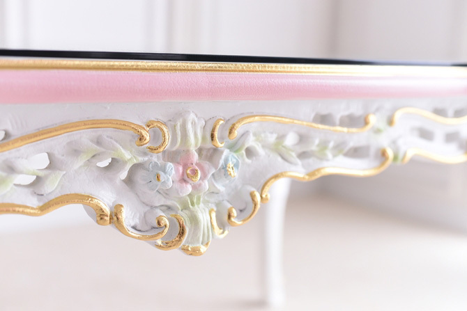 商品説明 | 猫脚で大きめのソファーテーブル。ゴールドの縁取りとヨーロピアンなピンクライン、手描きのペイント、すべて、手作りです。2人なら、食事もできそうです。天板ガラス付きです。 ※イメージ写真に一緒に写っている他の家具や小物は商品に含まれません。 【サイズ(cm)約】 幅121×奥行き64.5×高さ52 ガラス天板厚み6mm 【材質】 MDF 【生産国】 中国 【備考】 ※落札価格に消費税が掛かります。 ※お使いのモニターや照明器具などで、実際の色とは若干異なって見える場合があります。 ※アウトレット商品のため、多少の色ムラ、小キズが見られます。使用には問題ありません。 ※ヤフオク以外でも販売していますので、出品中に在庫が無くなった際は、出品を取り消す事がございます。 |