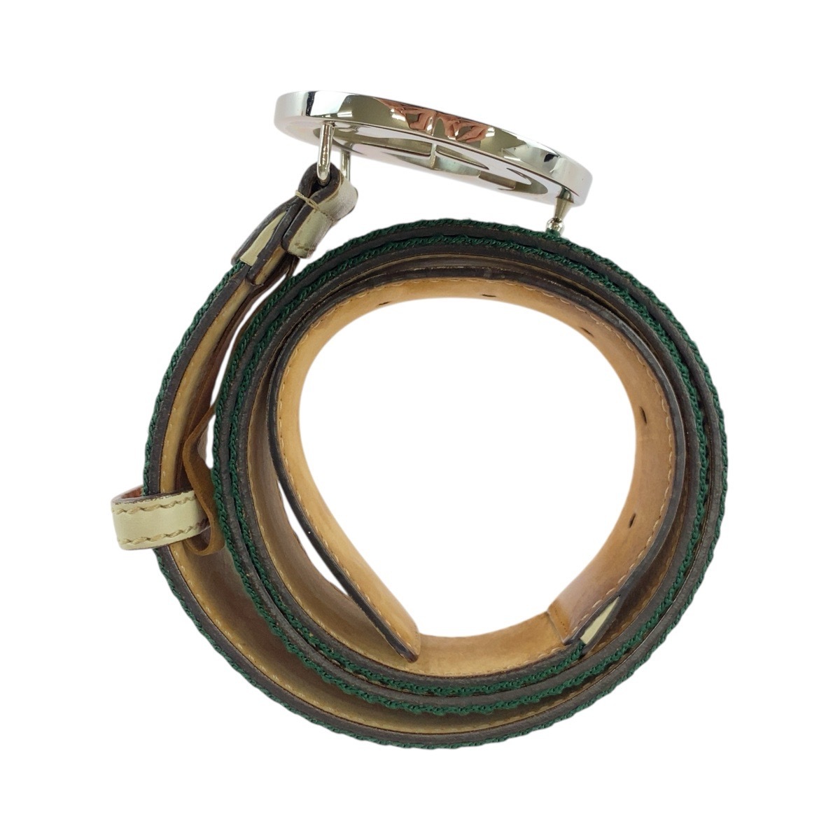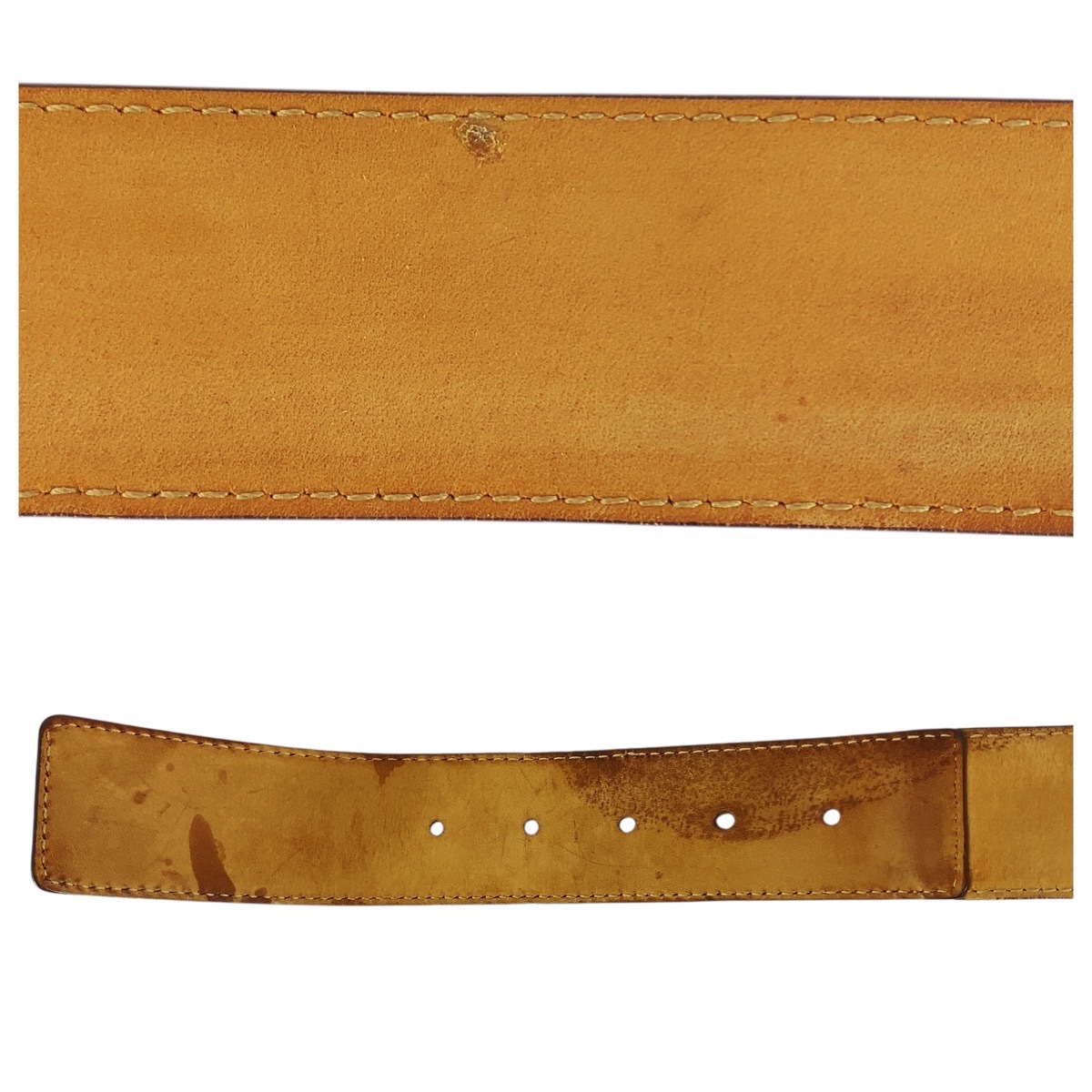 | サイズ | ベルト全長(バックル含む):約109cm ベルト幅:約4cm ウエスト:約90cm ~ 100cm 穴の数:5 バックル縦:約6cm バックル横:約6.5cm 表記サイズ:38 |
