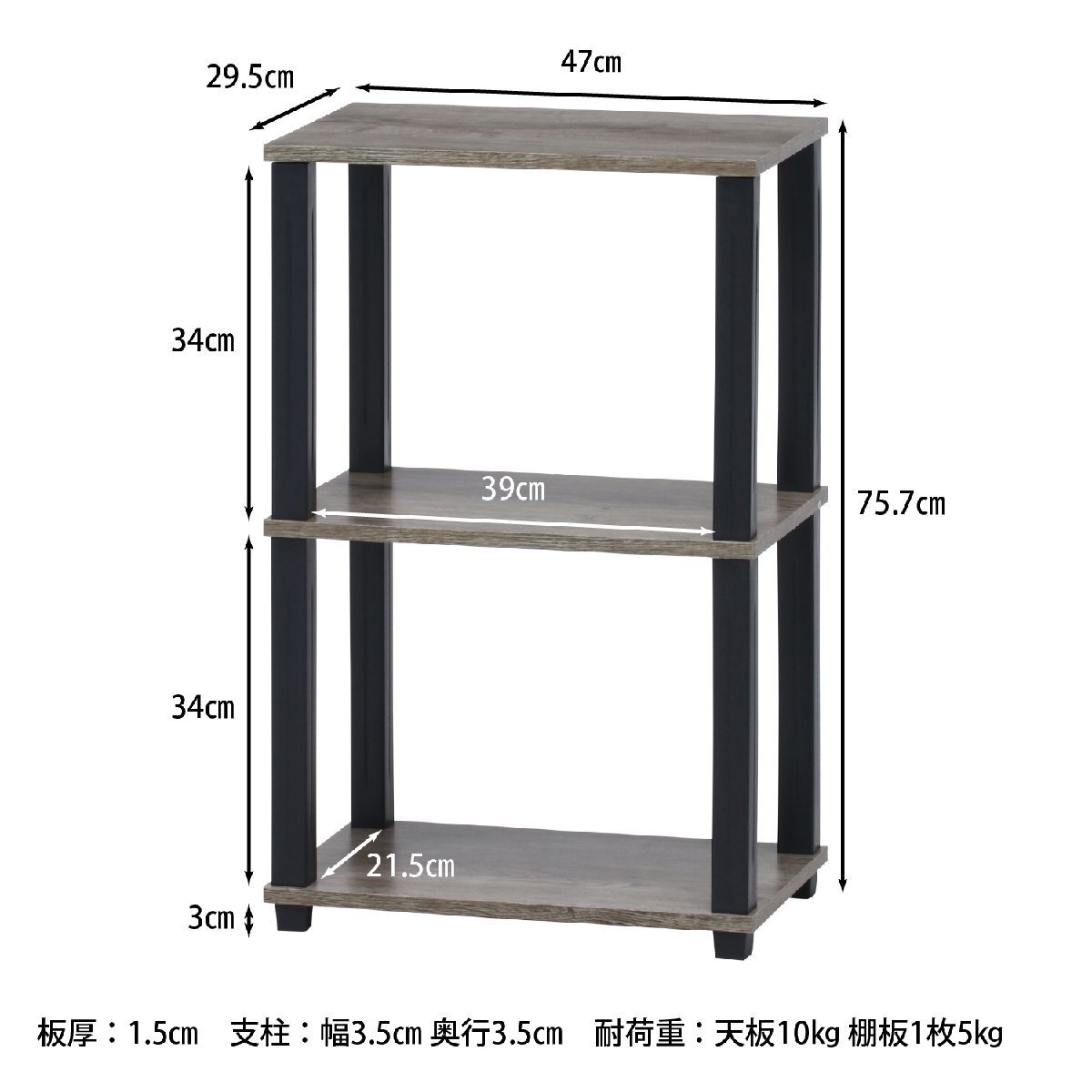 サイズ | 全体:幅470 × 奥行295 × 高さ757mm 耐荷重(天板):10kg 耐荷重(棚板):5kg 板厚:15mm ※サイズ詳細はサイズ画像をご参照ください。 |