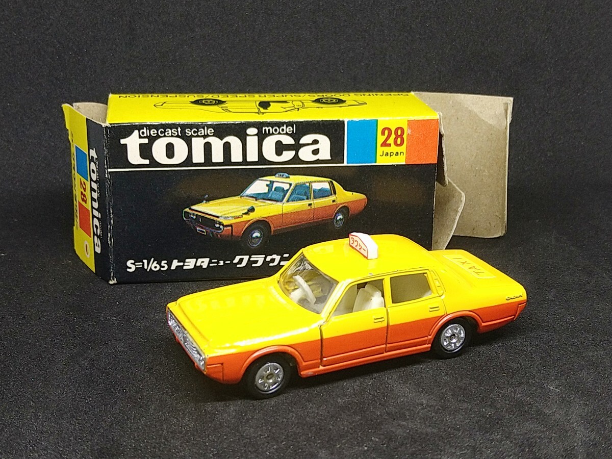 説明必読 トミカ 28 トヨタ ニュークラウン タクシー 黒箱 色指定箱 絶版 TOMICA 当時物 日本製 1E TOYOTA crown taxi