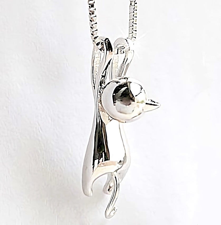 こちら小さな猫ちゃんがチェーンにぶらさがり遊びしている可愛い925シルバーネックレスとなります。