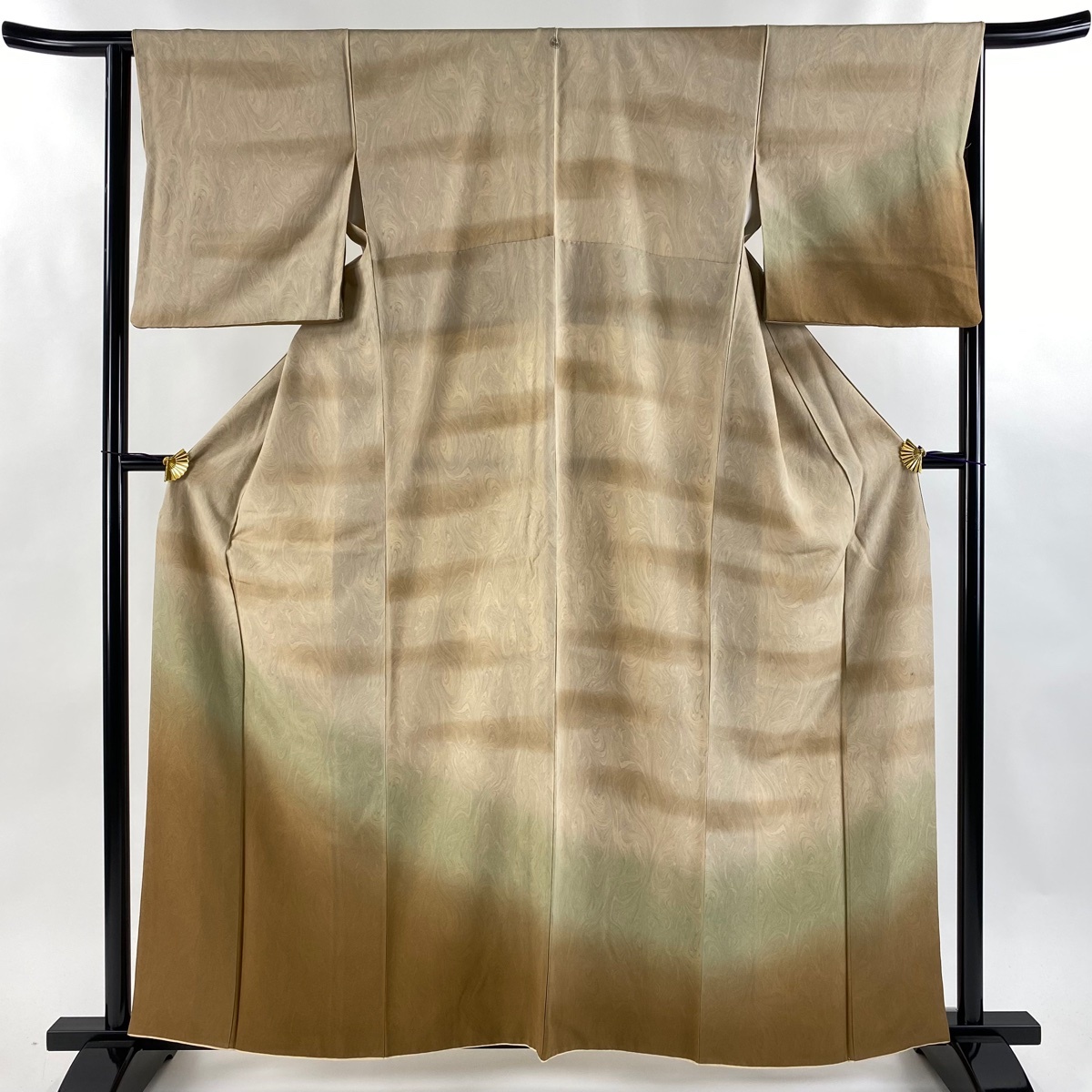| 付下げ 美品 名品 落款 墨流し 霞 ぼかし 薄茶色 袷 身丈159 裄丈65 M 正絹 【中古】 |