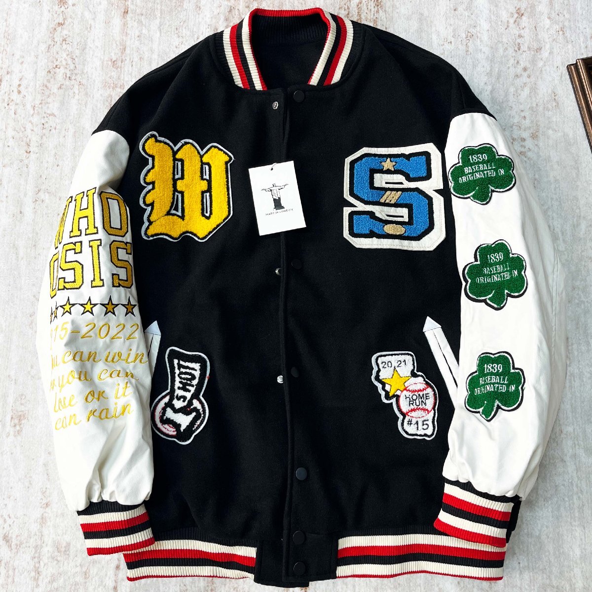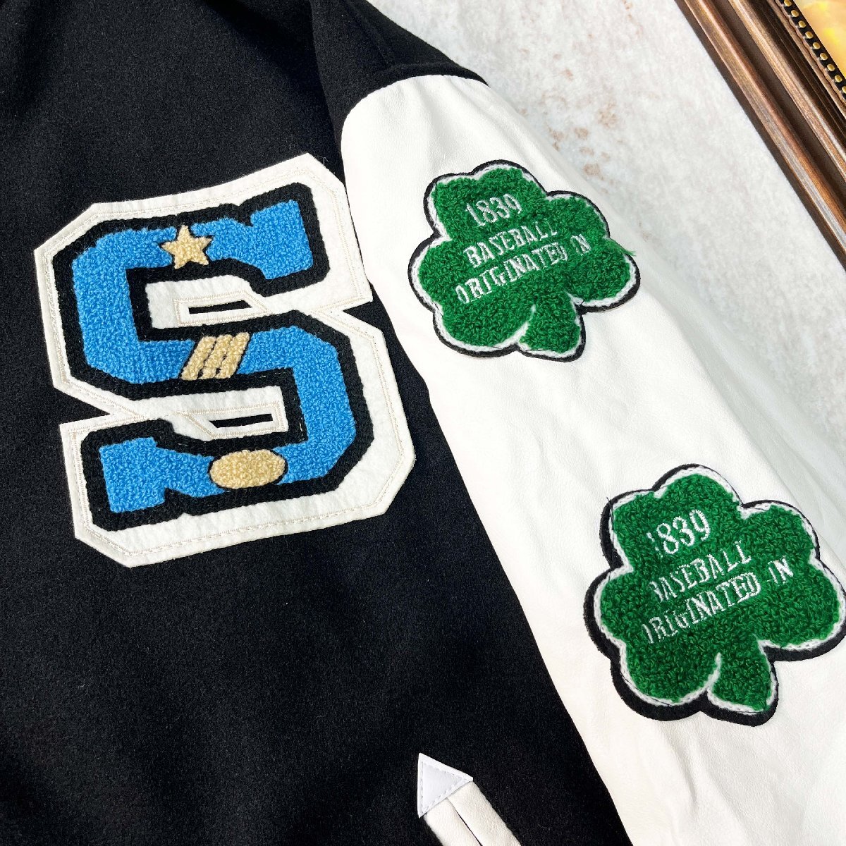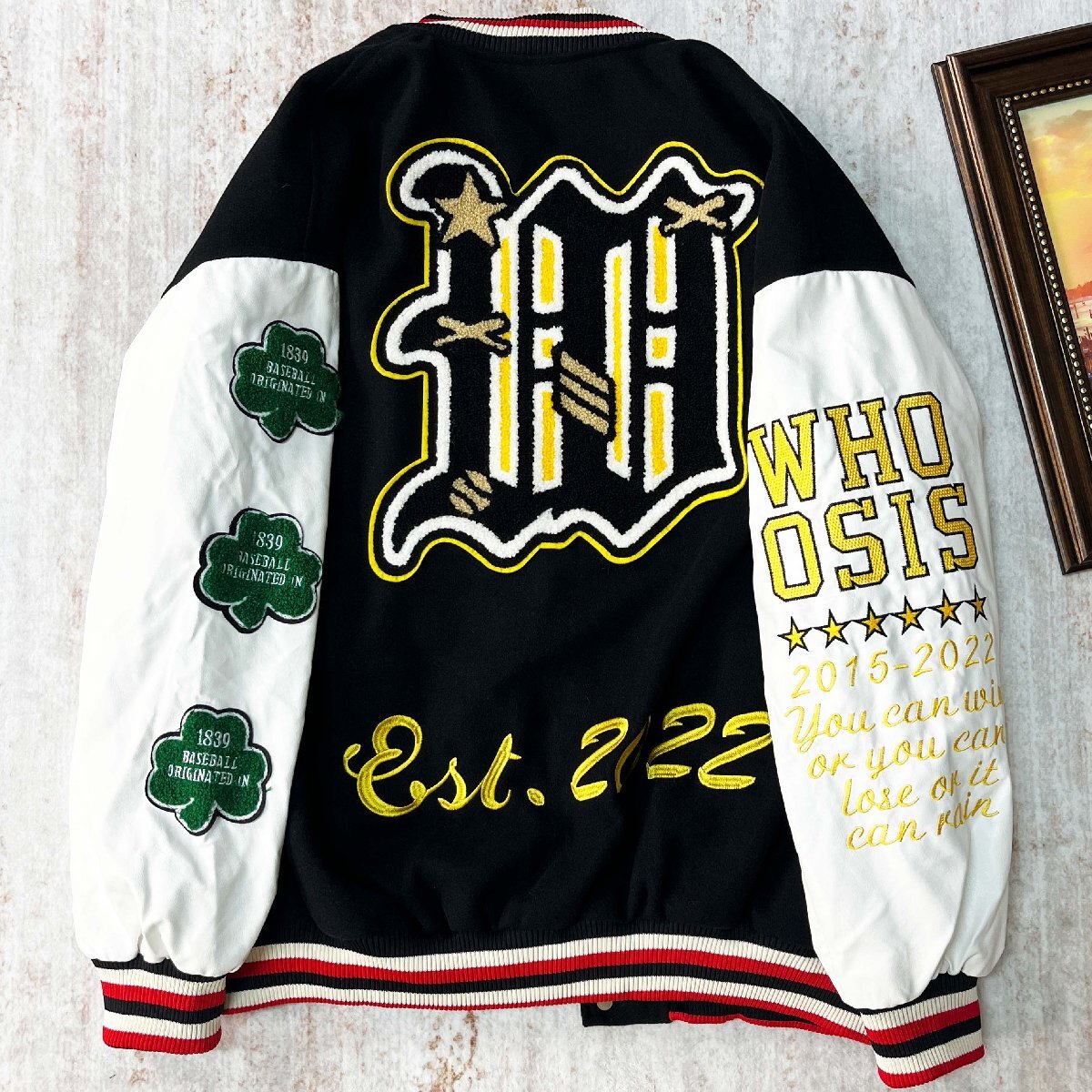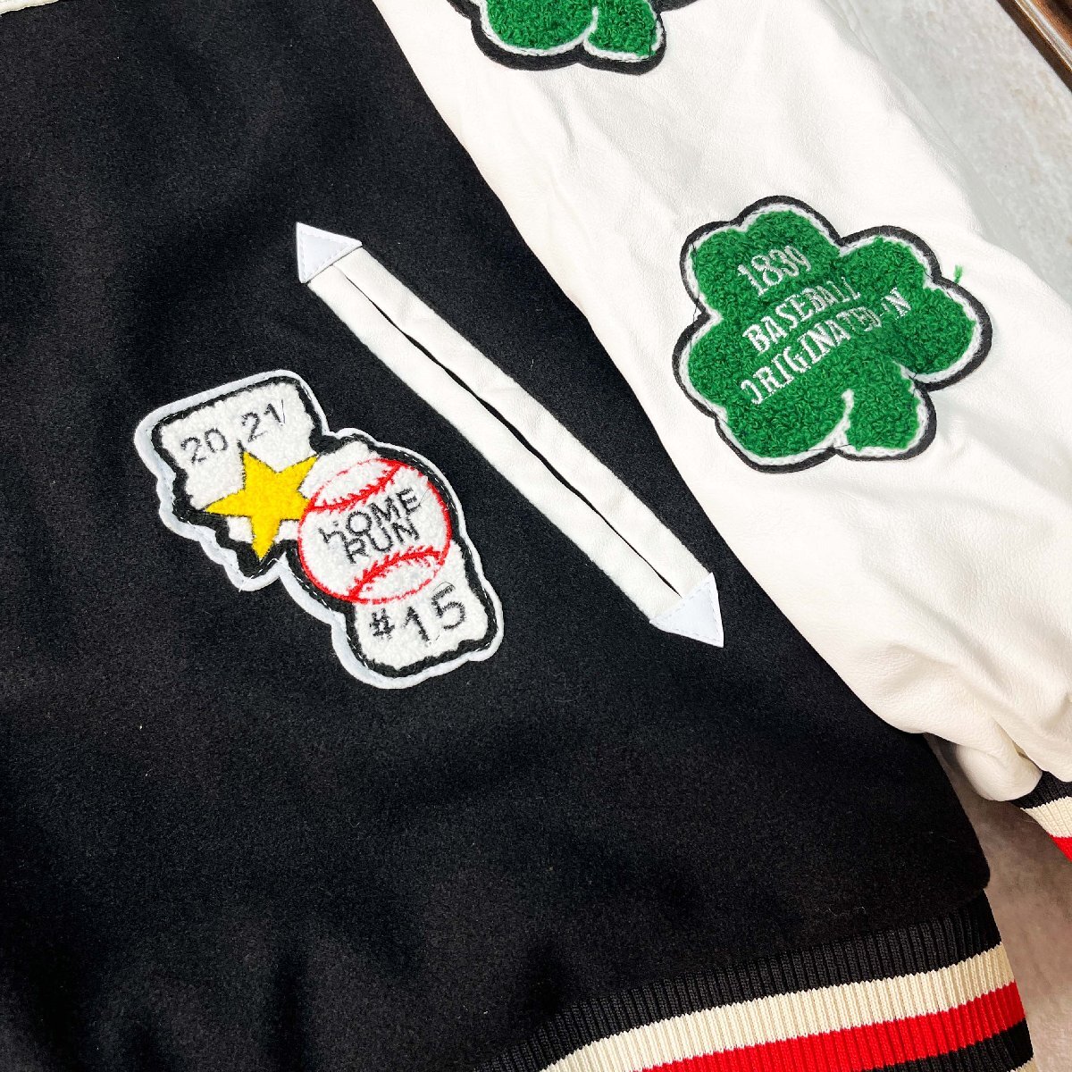 一枚限定 スタジャン ロンドン製造 個性 カシミア100% ソフト 刺繍 パッチワーク アメカジ ストリート 野球 ジャケット スポーツ SIZE:2XL