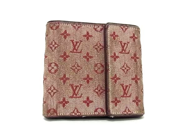 1円 LOUIS VUITTON ルイヴィトン M92241 モノグラムミニ ポルト ビエ カルト クレディ モネ 三つ折り 財布 ウォレット レッド系 FT1609