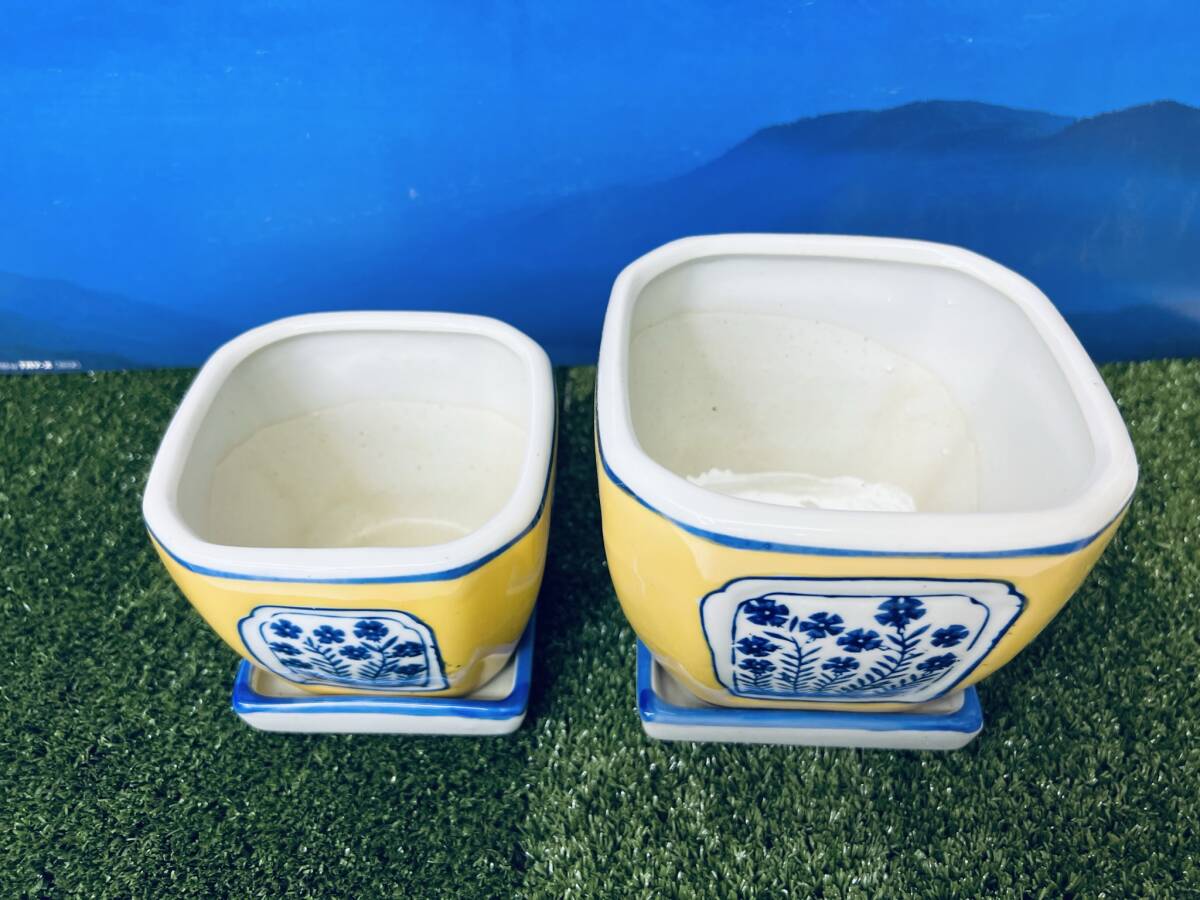 陶器 【皿付 植木鉢 大小2点セット 黄色】 盆栽 植物 多肉 庭園 お庭 人気 訳有り