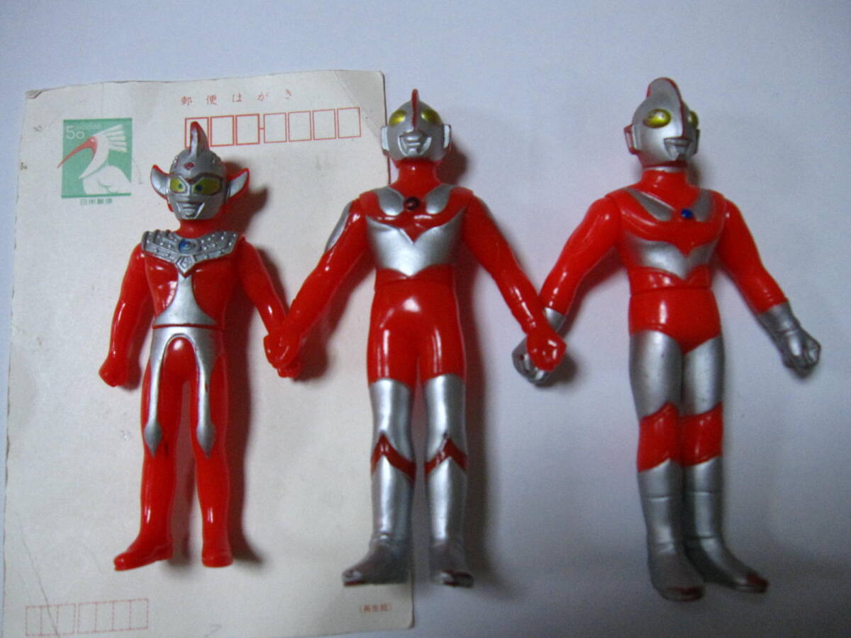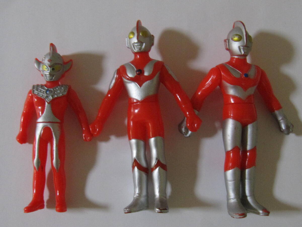 ウルトラマン ソフビ 3個 フィギュア 日本製 1988年 円谷 コタロー セット レトロ 玩具 コレクション 当時物 小物 コレクター バンダイ 1