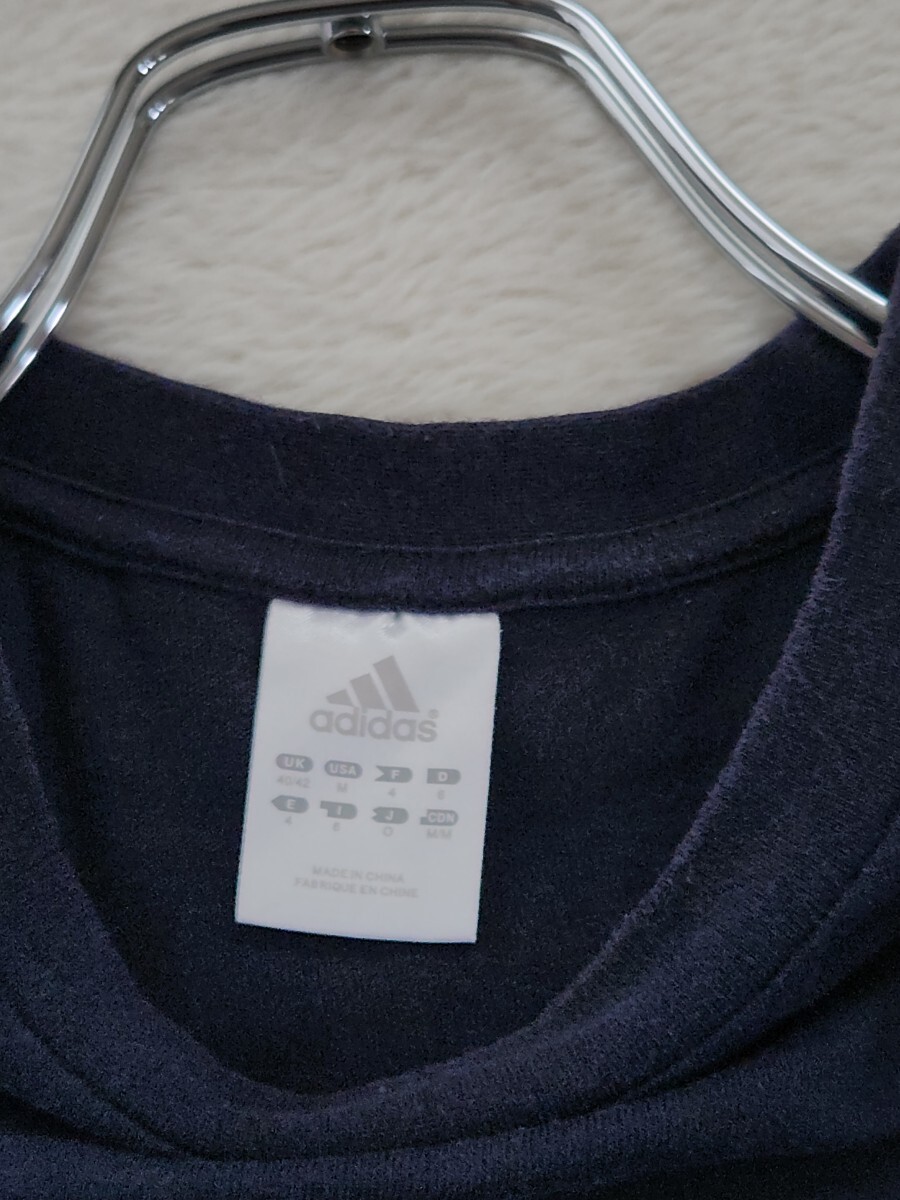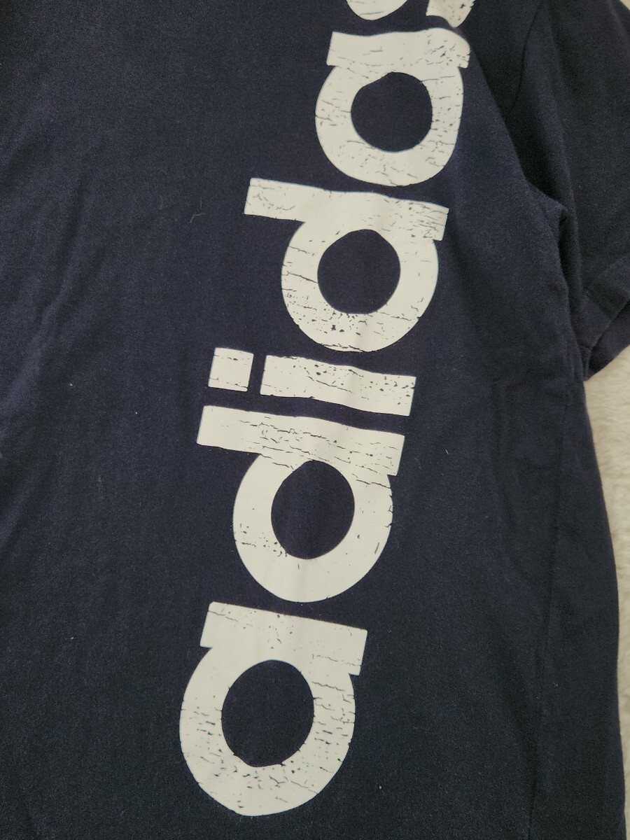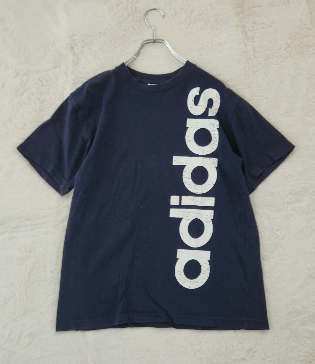 アディダス adidas ビッグロゴ Tシャツ 縦プリント ネイビー M L 古着 スポーツ ストリート