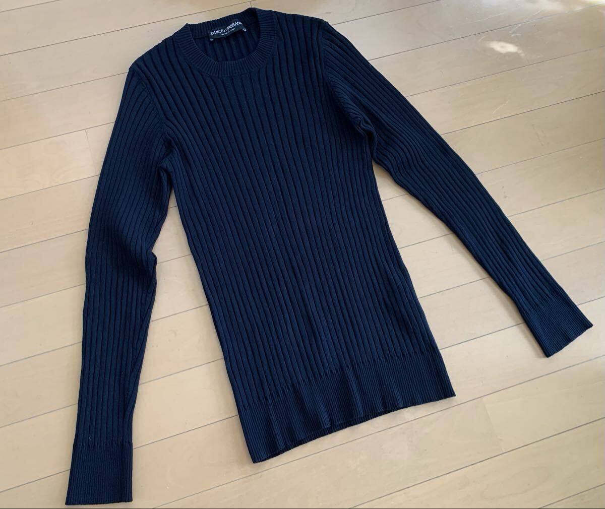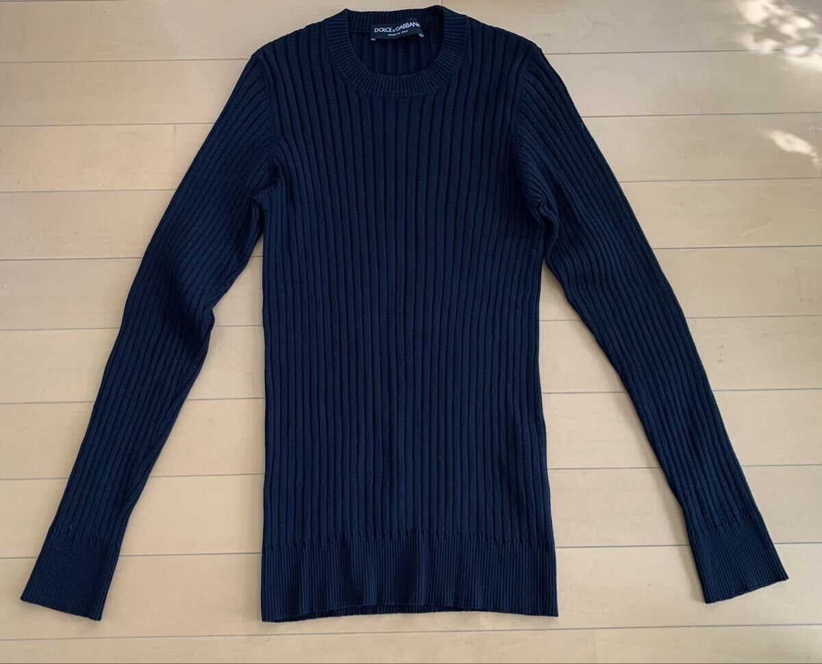 DOLCE&GABBANA DG 紺 リブニット デザイン クルーネック リブニット セーター 長袖 綺麗 の出品です。