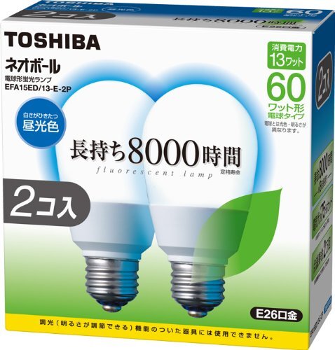 商品名 | TOSHIBA ネオボール A形 60Wタイプ 昼光色 2個パック EFA15ED/13-E-2P 口金直径26mm |