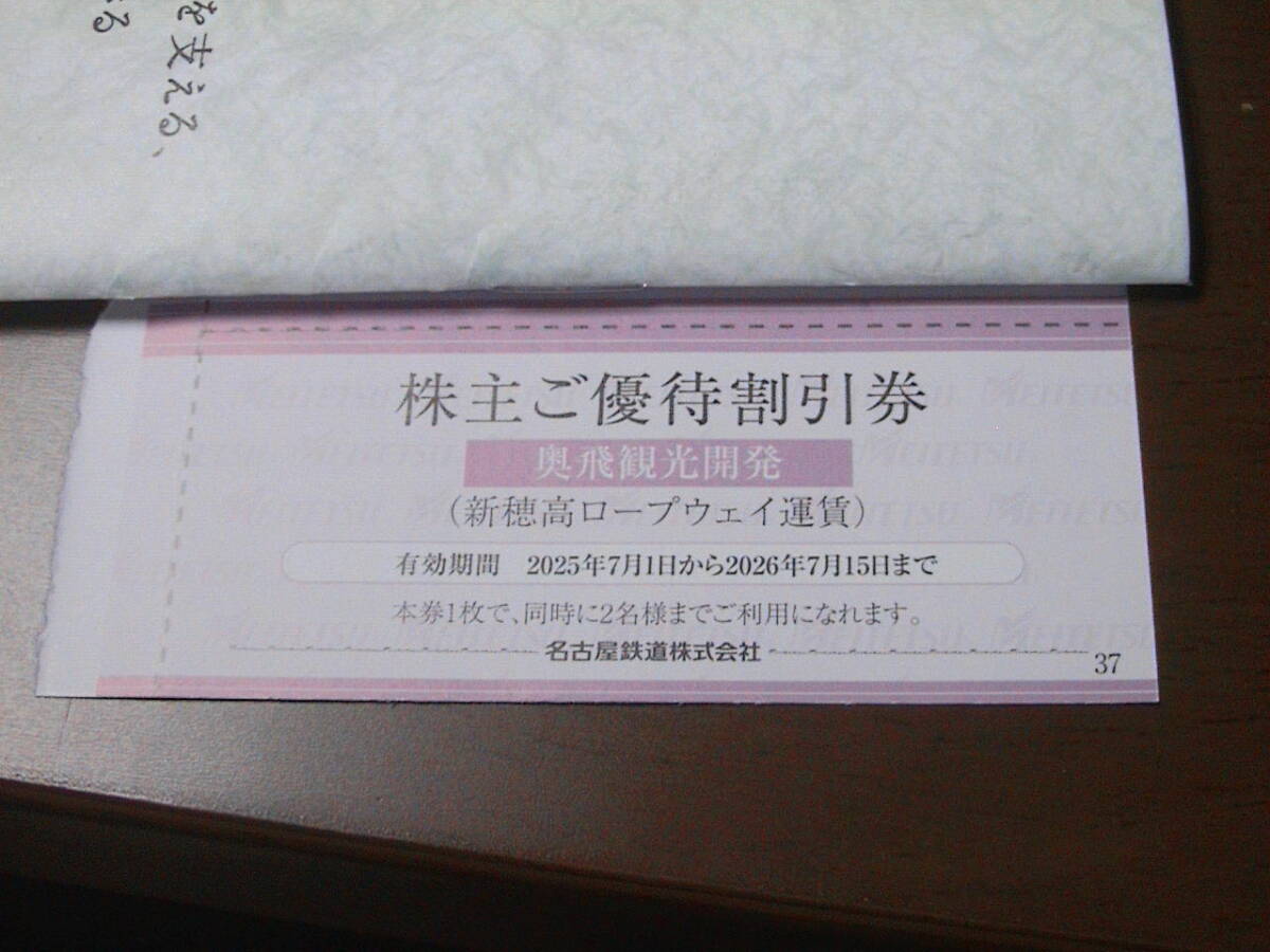 新穂高ロープウェイ運賃 割引優待割引券 : が、1枚です。