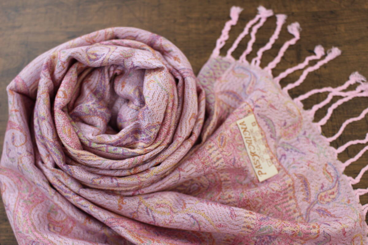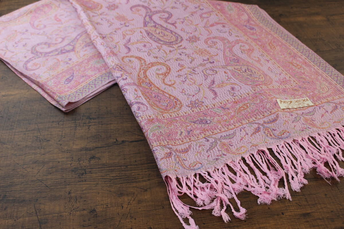 新品【パシュミナ Pashmina】ペイズリー柄 ライトピンク系マルチカラー PINK 大判 ストール カシミア100% Cashmere
