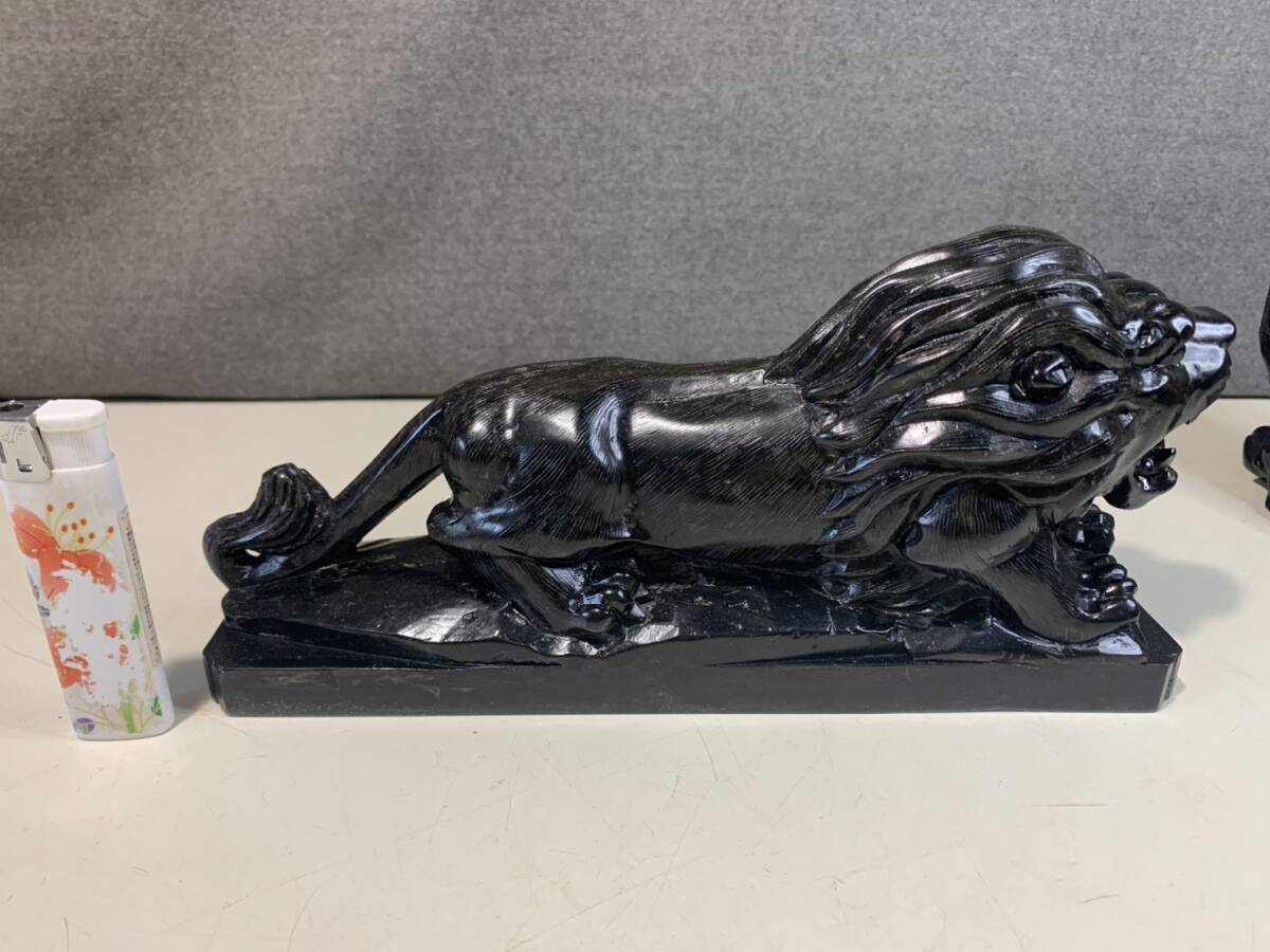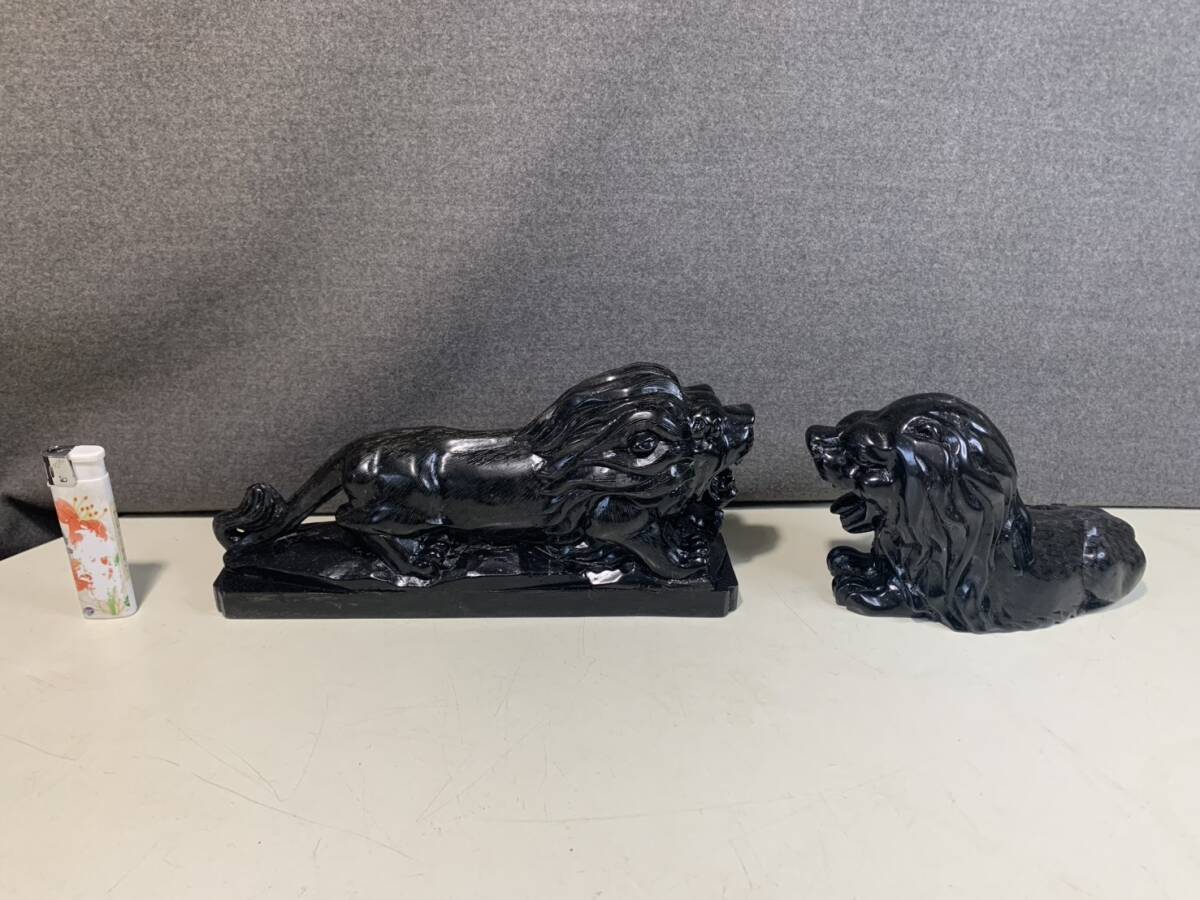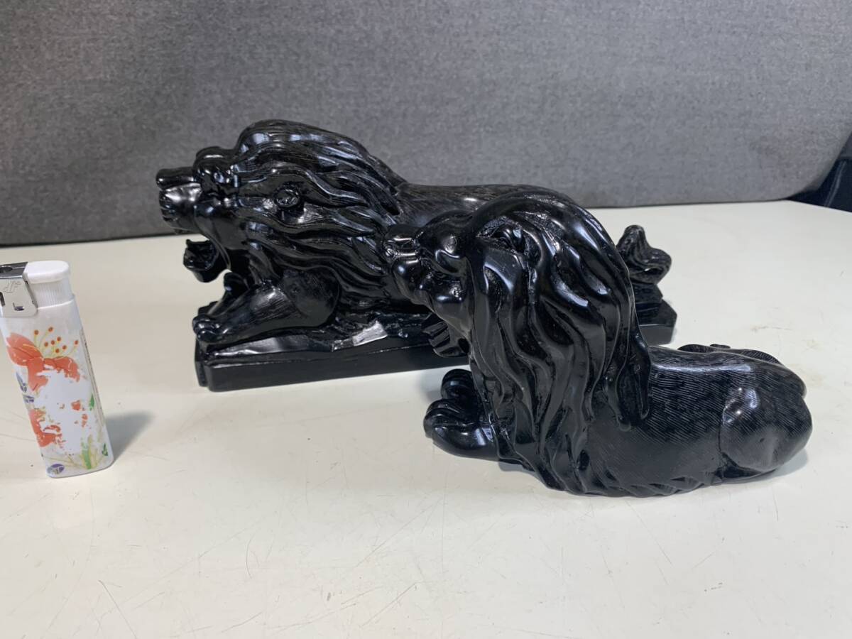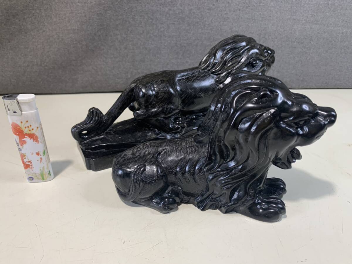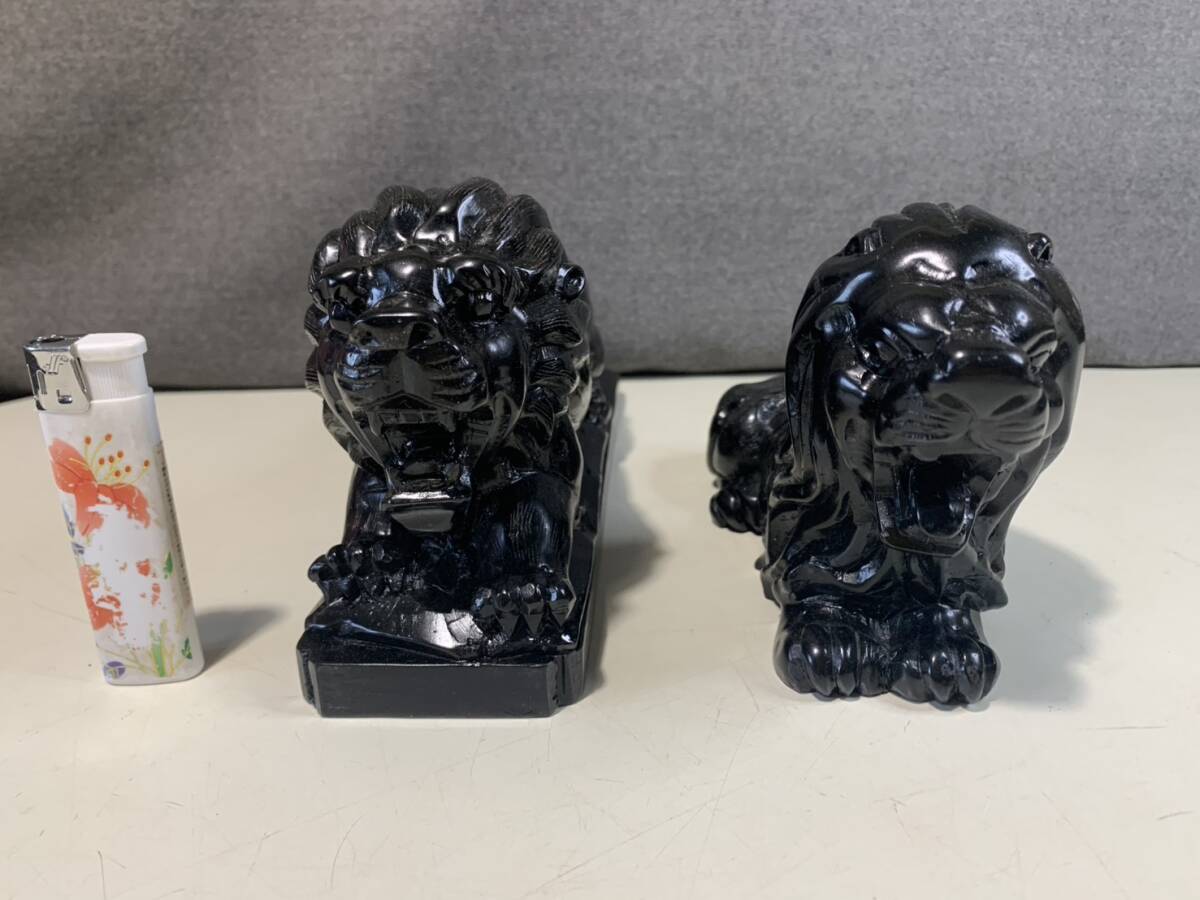黒曜石の獅子ペアの彫刻です w23cmxd6cmxh10cm w16cmxd6cmxh10cm