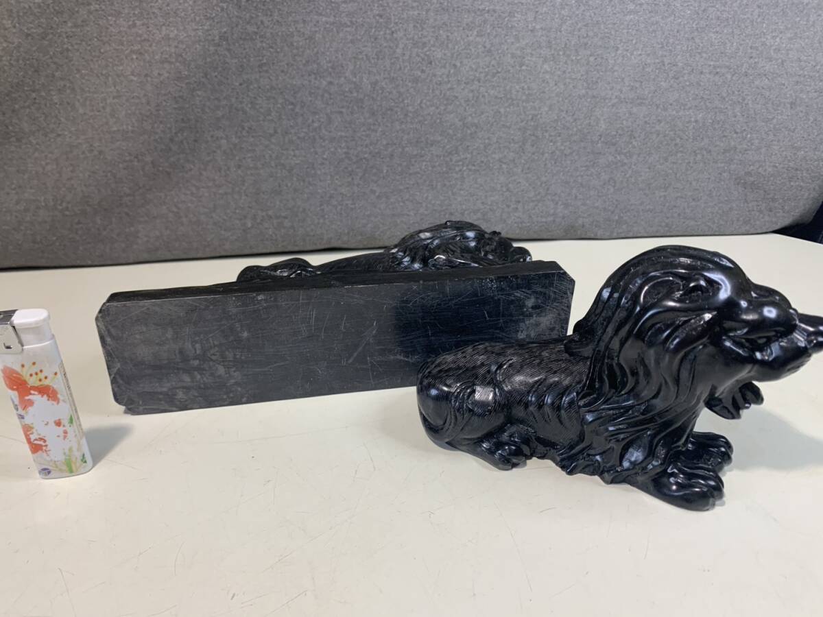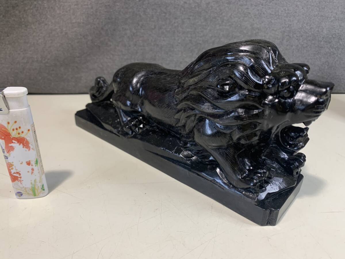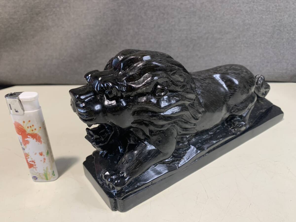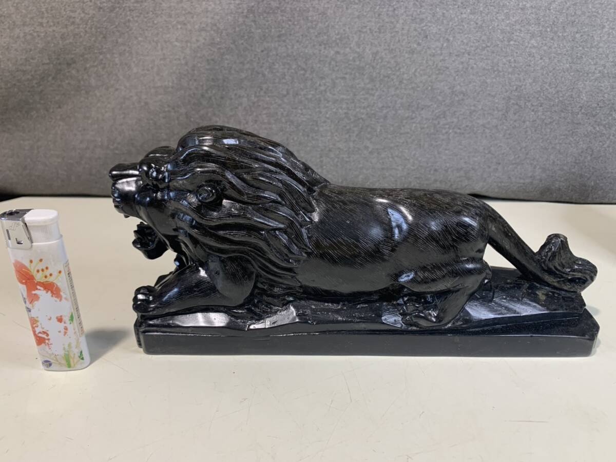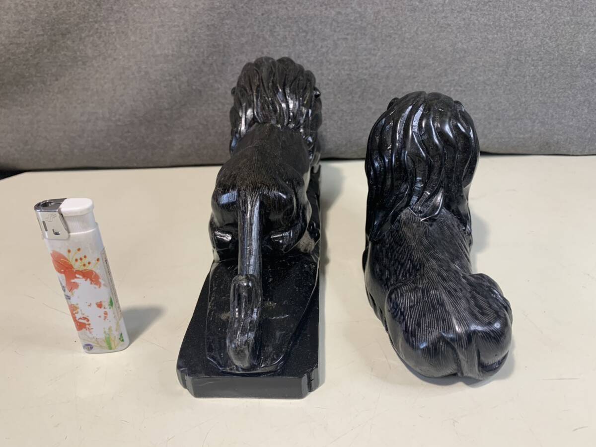 黒曜石の獅子ペアの彫刻です w23cmxd6cmxh10cm w16cmxd6cmxh10cm
