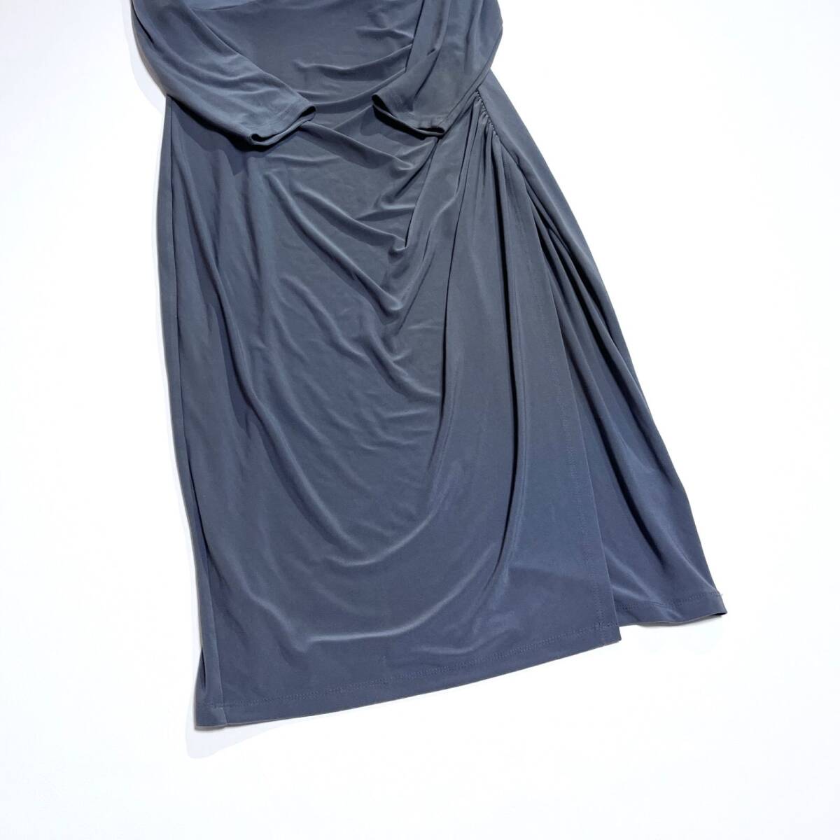 ロングジャージーワンピース カシュクール ギャザー ロングワンピース ドレス ストレッチ性あり 伸縮性 ロング丈