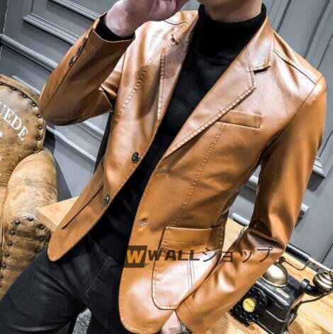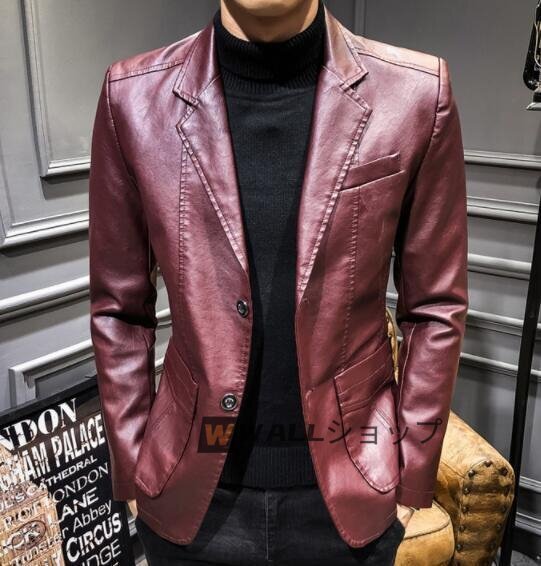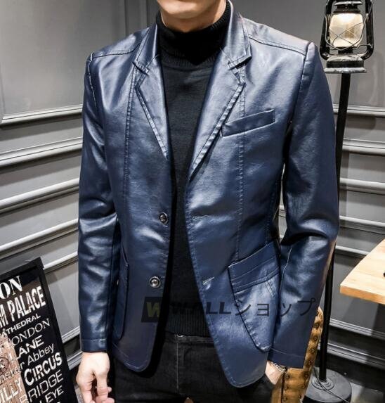 美品☆ブレザー メンズ レザージャケット ライダース テーラード バイクウエア フォーマル 革ジャン 細身 4色 M~4XL