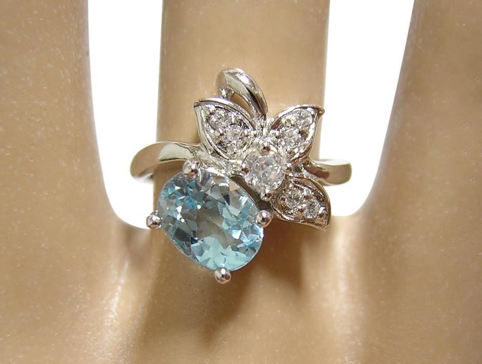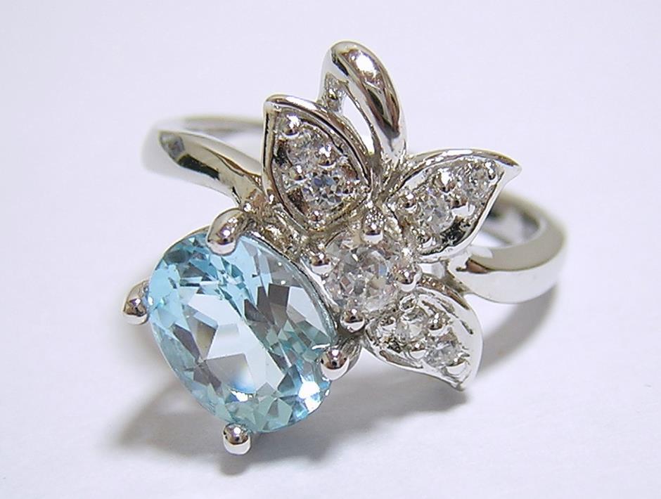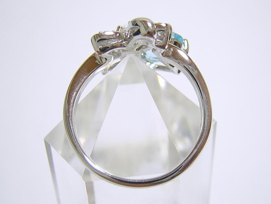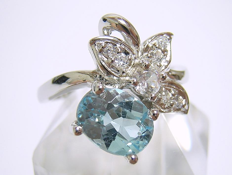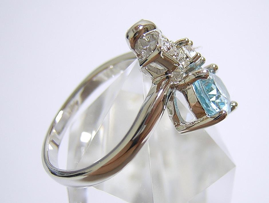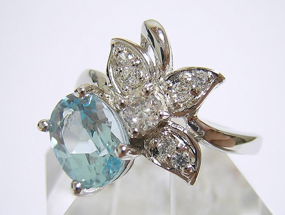 天然ブルートパーズとキュービックジルコニアを使用したデザインリングです。 ブルートパーズの大きさは約8×6mmです。 【中石】天然ブルートパーズ 【産地】アフリカ産 【処理】照射 【カット】オーバルファセットカット 【脇石】キュービックジルコニア 【重さ】3.2g 【サイズ】11号 (お直しは承れません) デザイン部:縦15mm×横19mm 【素材】シルバー925 (14金ホワイトゴールド仕上げ) 【刻印】925 【状態】新品 |