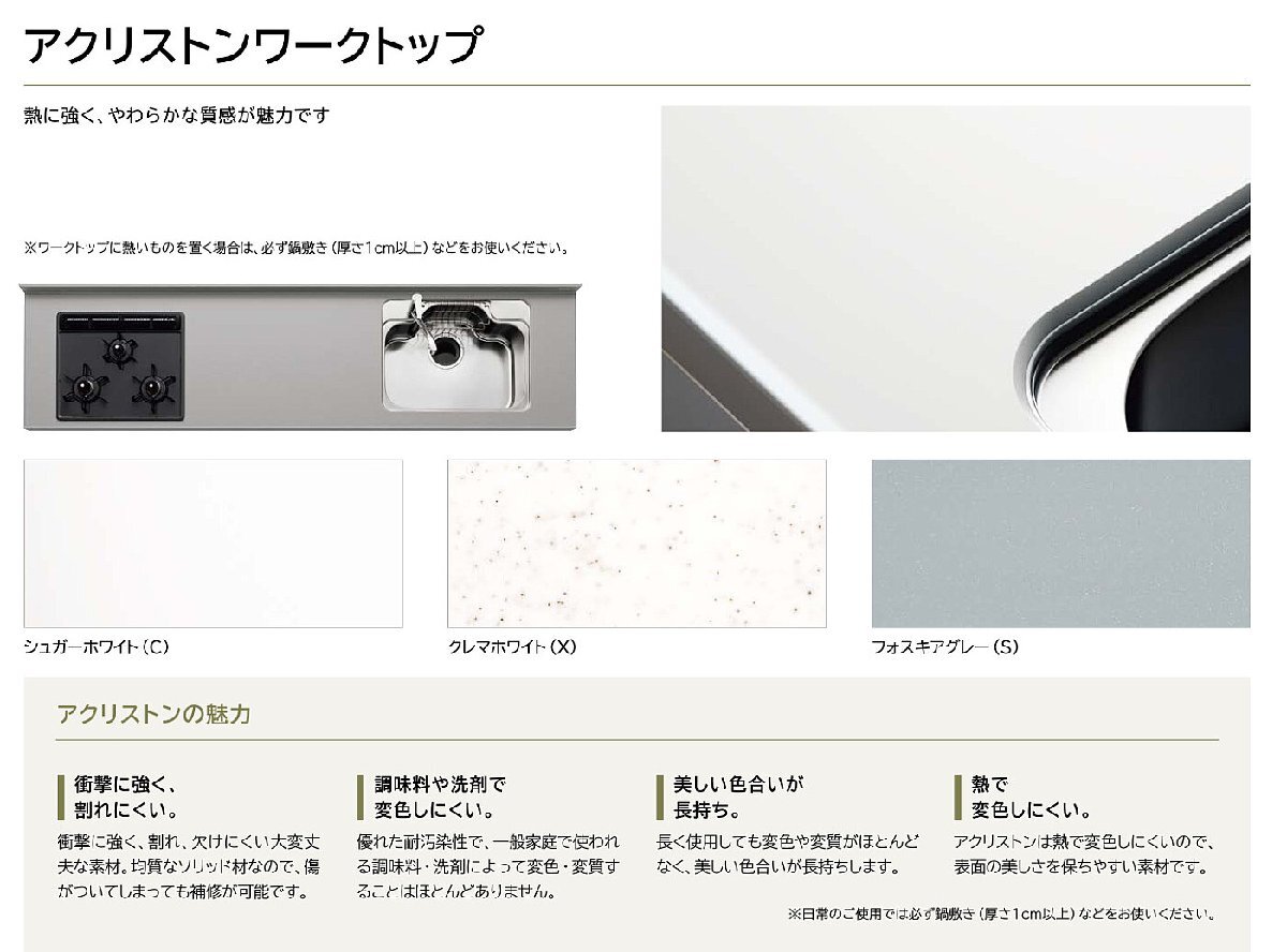 ◆美しい色合いの人造大理石『アクリストンワークトップ』