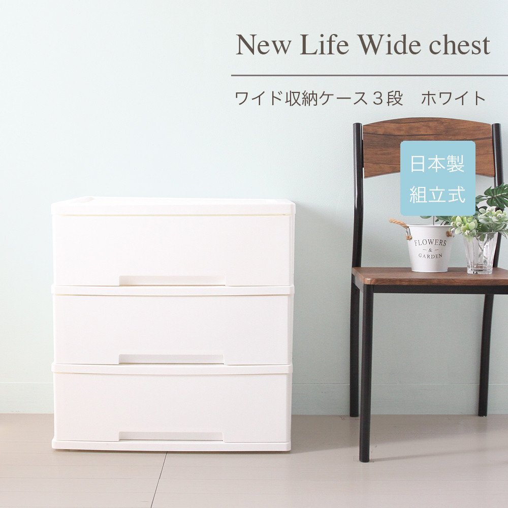 即決可@新品NewLife ワイド収納ケース3段/ブラウン | ||||||||||||