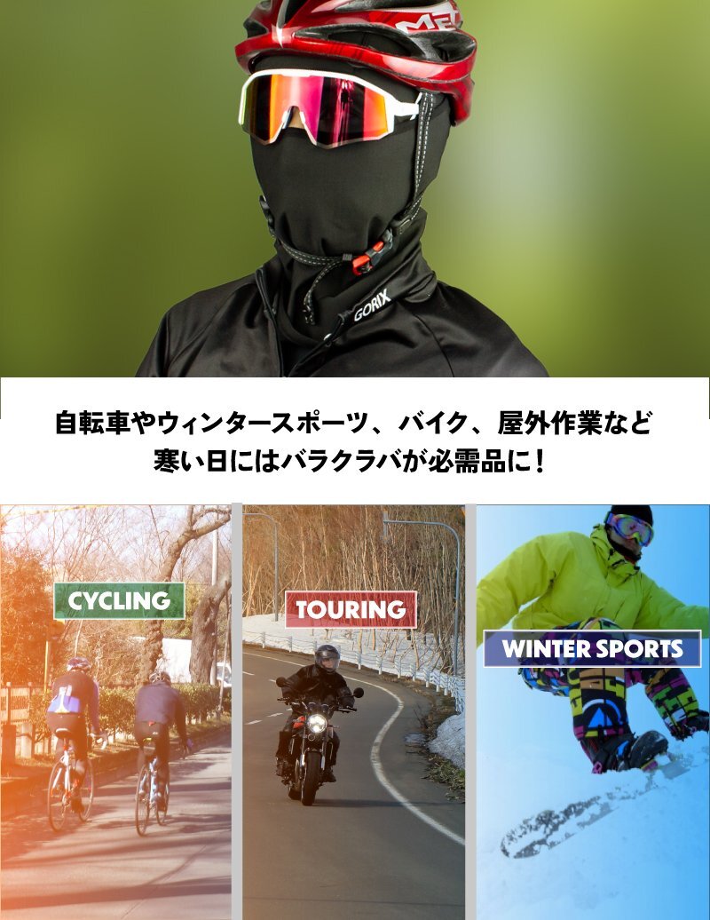 薄手の冬秋春向けバラクラバ。 生地厚すぎないので首がごわつく事もない。また長いシーズン着用いただけます。 顔を出して野外活動をする際、冷たい雨風から顔全体をガードするフルカバーマスク。 空気中の粉塵から顔全体を守り、耳までしっかりと保護。 内部はソフト起毛で暖かく肌触りは良く気持ちがいい着用感。 軽量で柔らかいので長時間でも疲れない。 伸縮性もあり締付け過ぎずフィット感も優れています。 速乾性があり水や汗で濡れても乾くのに時間をかけない。 UVカットUPF50+で自転車などの長時間外で活動する時の紫外線による日焼け対策に。 目元以外は覆われるので日焼け対策にとても有効です。 日差しから肌を守る。紫外線濾過率99%以上! 最高値のUPF50+で紫外線から肌を守り日焼けを防止します。 自転車やバイクのヘルメットやスキー、スノーボードのヘルメットやキャップのしたに着用する事もできます。 サイクリングやスノボー、バイク、釣り、キャンプなどの様々なスポーツでも大活躍。 寒さや、埃、紫外線などの対策に。 商品内容バラクラバ サイズフリー(メンズ/レディース兼用)(伸縮性あり、伸縮範囲約+5~8cm) 重量約40g 素材100%ポリエステル |