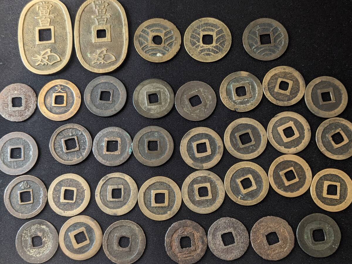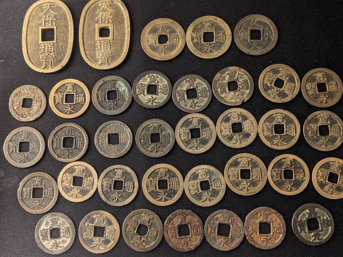 【古銭】 寛永通宝 ( 輪筋違川、御蔵銭、難波額輪、輪十後打、竹田斜宝など) 天保通宝(長郭手(白銅質)、背異) まとめて