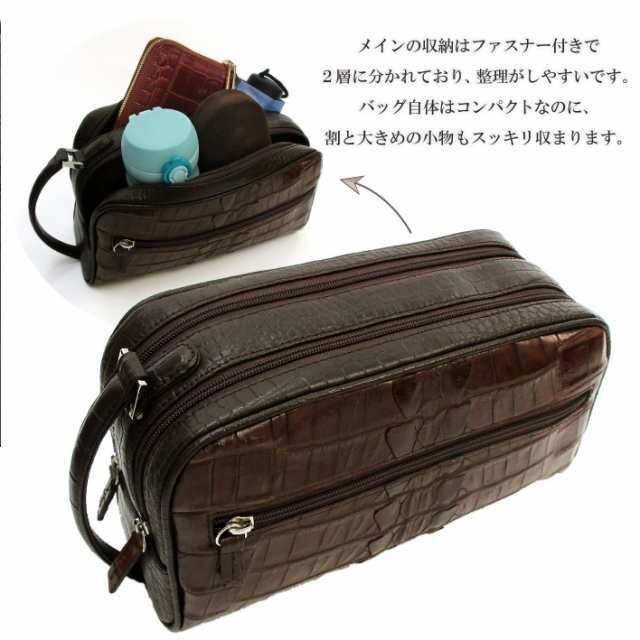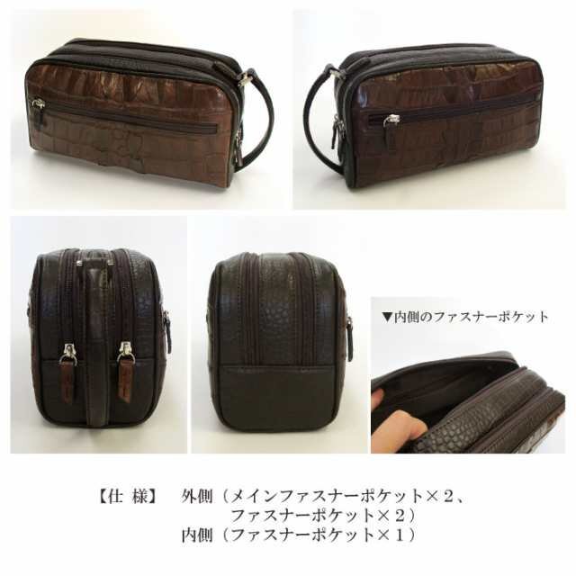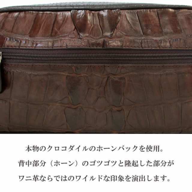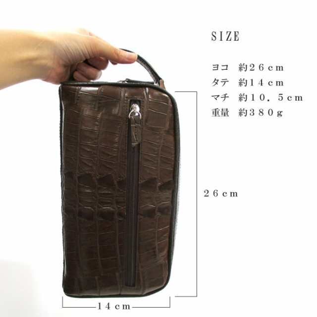本物のクロコダイルのホーンバックを使用しています。 背中部分(ホーン)のゴツゴツと隆起した部分がワニ革ならではのワイルドな印象を演出します。 マット加工を施しており、落ち着いた上品さも兼ね備えています。 メインの収納はファスナー付きで2層に分かれており、収納するものを分類できるので整理がしやすいです。 バッグ自体はコンパクトなのに、割と大きめの小物もスッキリ収まります。 両面両側のファスナー付きフリーポケットはよく使うカード等を入れるのに便利です。 ワシントン条約゛CITES(サイテス)“の規定に基づいて輸入された養殖のエキゾチックレザーを使用しています。 (CITES(サイテス)は本物の証明として発行されるものです) ■カラー:D.BROWN ■素材:クロコダイル ■サイズ(約):横26cm×縦14cm×マチ10.5cm ■重量:約380g ■仕様:外側(メインファスナーポケット×2、ファスナーポケット×2)内側(ファスナーポケット×1) ご注意 ・天然素材のため1点1点模様が異なります。柄でのお取替えはできませんので予めご了承の上ご購入くださいませ。 ・製造過程や入荷時期のより色合いなどに若干の誤差が生じる場合がございます。 ・商品の仕様、デザインは製品向上の為に予告なしに変更になる場合がございます。 ・ご覧のモニターやブラウザの設定、照明などにより、画像と実物の色合いが若干異なる場合がございます。 以上ご理解とご了承の上、ご購入をお願いいたします。 当店の商品は、全商品「同梱不可」です。 ※1点につき送料がかかります。ご了承頂ける方のみ、オークションへご参加下さいませ。ご参加後のキャンセルはできません。 当店はお客様に喜んで頂けるようお安い価格でオークションへ出品しております。転売目的の入札・落札は固くお断り致します! 万が一、箱なしや外箱(袋)の潰れや破れがある場合、付属品のない場合でも交換や保証は致しません。予めご了承下さいませ。 | |