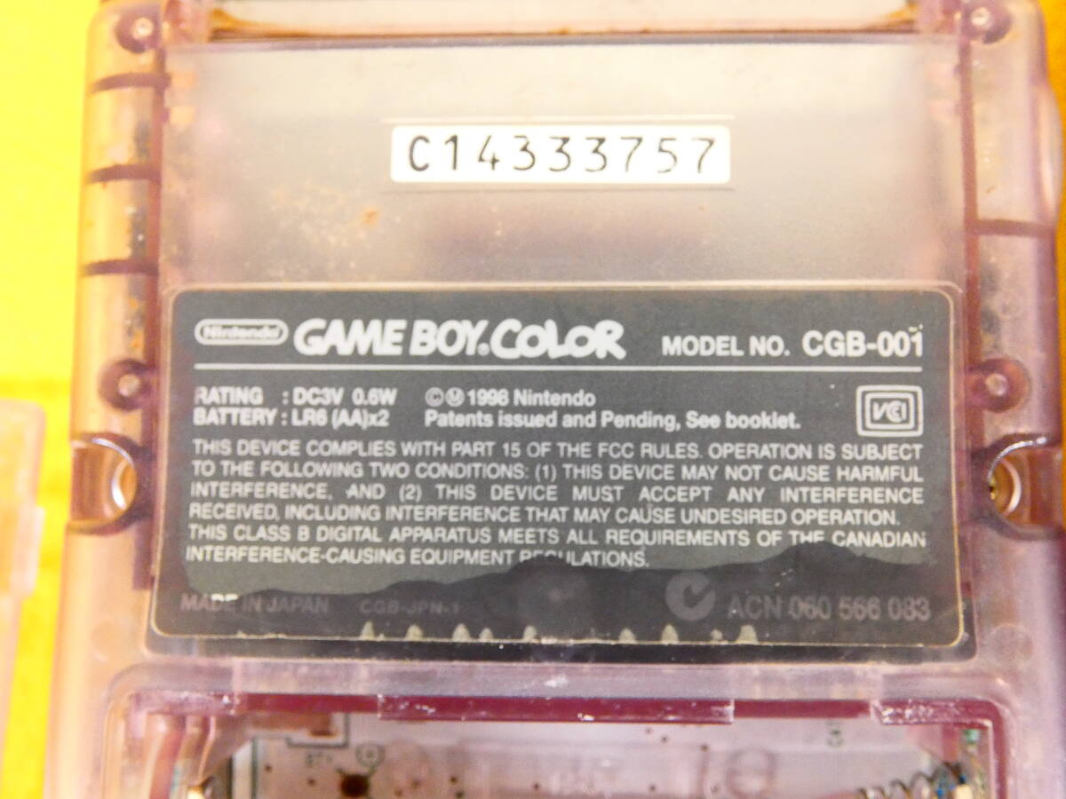 【 (GM-11) Nintendo 任天堂 GAMEBOY COLOR ゲームボーイカラー CGB-001 クリアパープル 2台 ゲーム機器 ※ジャンク@送料600円(9)】 ※基本的に金曜午後、土曜、日曜はオークションに関する連絡、発送等全般の対応は行っておりません。翌月曜日から順番になります。対応が遅れる場合が御座います。予め御了承下さい。 (金曜日終了日分の場合も翌月曜から対応です。) ※一番下の「ご注意事項」まで全てお読みになり、ご検討、ご入札をお願い致します。 ■状態:ジャンク品です。 電池ケース内金属が液漏れ汚れがあり錆びています。 通電しません。 外装汚れ、傷等ございます。 ジャンク品をご理解の上ご検討をお願い致します。 ※付属品に関しては画像にてご確認いただけるものが全てとなっております。 ※タイトル最後尾の()内は当方の番号です。 素人の目視確認の為、見落としがある場合もございます。 クリーニングはあくまでも簡易的なため、細かな汚れやホコリが付着した状態でお渡しする場合もございます。 ■元払い 発送予定サイズ レターパックプラス全国一律600円 ※お支払いはかんたん決済のみになります。 ※同梱に関しましては同日終了日分(同梱可能サイズ160 / 23㎏迄)のみとさせて頂きます。 送料は同梱サイズにより変動致します。 ゆうパック取り扱い不可商品との同梱の場合は佐川急便での配送となります。 ※配送業者、発送方法の変更は承れませんのでご了承願います。 ※下記の【ご注意事項】を御覧頂き、御了承、御理解の上御入札、御検討を御願い致します。 |