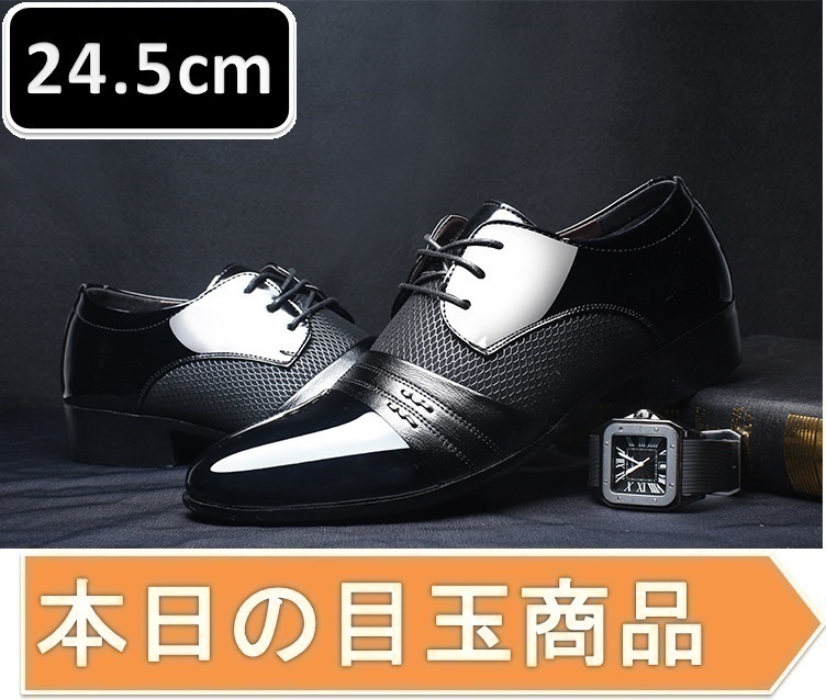 1スタ ☆ メンズ ビジネス レザー シューズ ブラック サイズ 24.5cm 革靴 靴 カジュアル 屈曲性 通勤 軽量 柔らかい 新品 【apa-160】