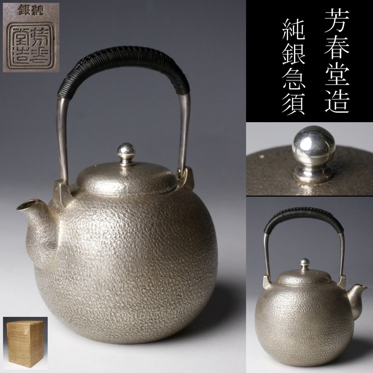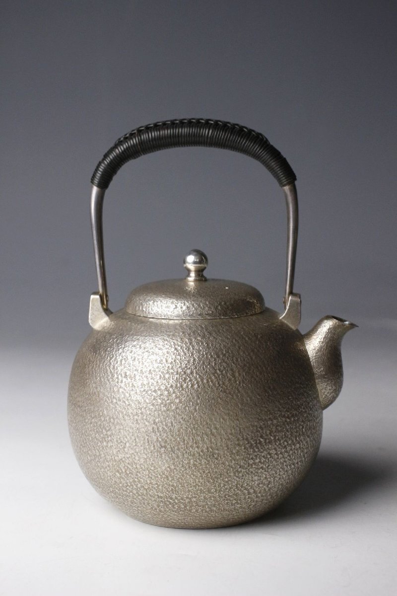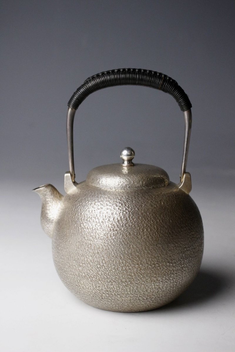 * * * 商品詳細 * * * ここでしか出逢うことのできない唯一の美をご紹介させて頂きます。 鮮やかな鈍い輝きに包まれた純銀急須のご紹介です。 細やかな地肌の文様が施されており、重厚感のある静かな佇まいが高い品位を感じさせます。 隙を感じさせない端正な造形も素晴らしく、小さくも強い存在感があります。 時代感のある洗練された優美な逸品をこの機会に是非お手元にてご堪能下さい。 ■商品内容/急須、箱 ■サイズ/横12㎝×高16.5㎝×奥行10㎝ 重量334g 箱:横13㎝×高20㎝×奥行13㎝ ■状態/スレ、小キズ、変色、 箱にキズ、欠け、潰れ、シミがございます。 ※写真にてご確認、ご了承の上ご入札下さい。