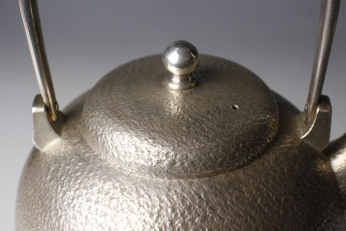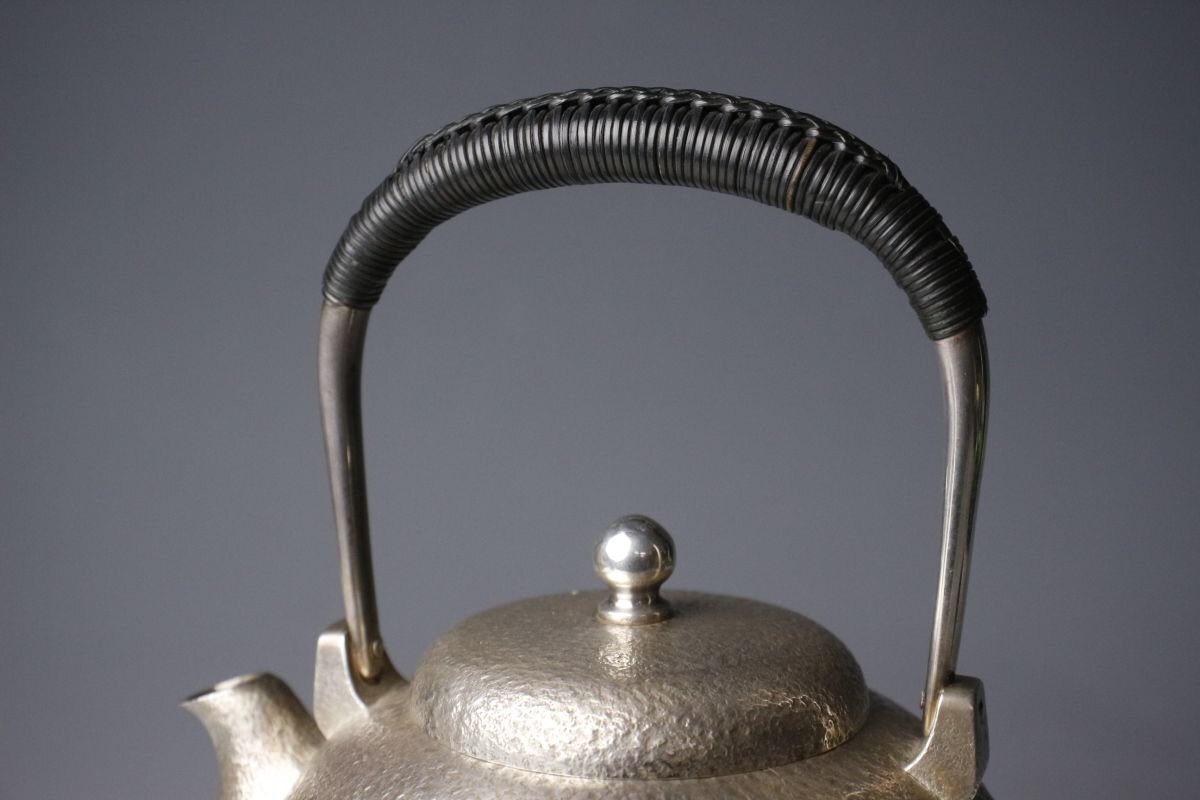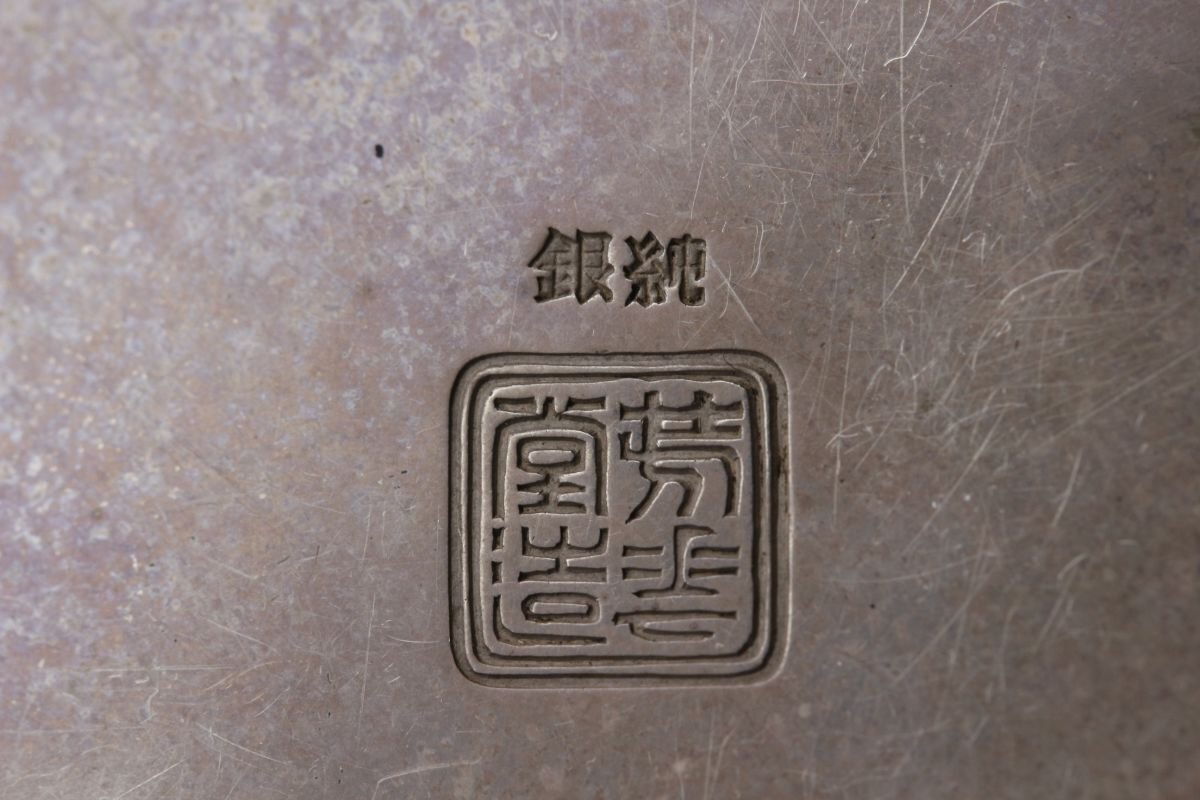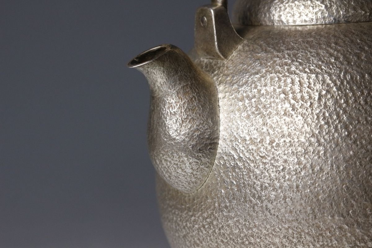 * * * 商品詳細 * * * ここでしか出逢うことのできない唯一の美をご紹介させて頂きます。 鮮やかな鈍い輝きに包まれた純銀急須のご紹介です。 細やかな地肌の文様が施されており、重厚感のある静かな佇まいが高い品位を感じさせます。 隙を感じさせない端正な造形も素晴らしく、小さくも強い存在感があります。 時代感のある洗練された優美な逸品をこの機会に是非お手元にてご堪能下さい。 ■商品内容/急須、箱 ■サイズ/横12㎝×高16.5㎝×奥行10㎝ 重量334g 箱:横13㎝×高20㎝×奥行13㎝ ■状態/スレ、小キズ、変色、 箱にキズ、欠け、潰れ、シミがございます。 ※写真にてご確認、ご了承の上ご入札下さい。