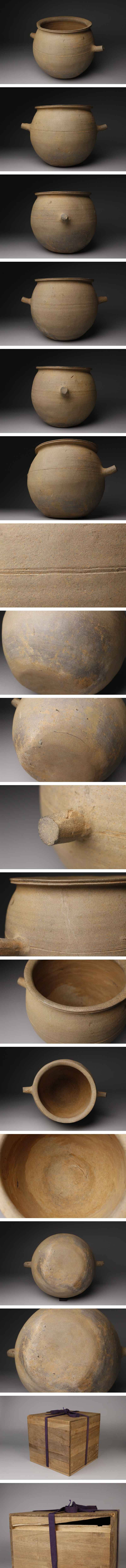 * * * 商品詳細 * * * ここでしか出逢うことのできない唯一の美をご紹介させて頂きます。 さらりとした乾いた質感で細やかな土の粒子が感じられるような肌地は何とも魅力的です。 小さな双耳が付いた丸みを帯びた造形で、有機的な曲線が素朴で温かみを感じさせます。 簡素であるからこそ素の美しさが見える、素晴らしい時代の逸品です。 この機会に是非お求めください。 ■商品内容/壷、箱 ■サイズ/横29㎝×高18㎝ 箱:横24㎝×高22㎝ ■状態/経年による傷み、スレ、キズ、欠け、ヒビ、窯被、直し、 箱にキズ、欠け、シミ、歪み、蓋に欠損部がございます。 ※写真にてご確認、ご了承の上ご入札下さい。