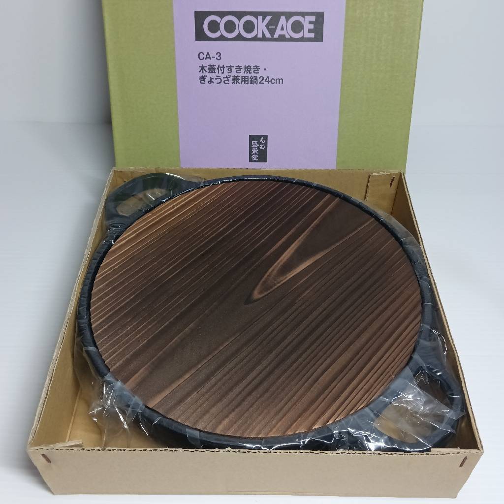 すきやきぎょうざ兼用鍋 24cm 専用焼杉木蓋付き 南部鉄器 クックエース
