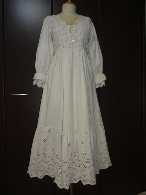 NICE CLAUP淡ベージュ色上身綿レース地W上切替裾綿レース地袖2重レースOP