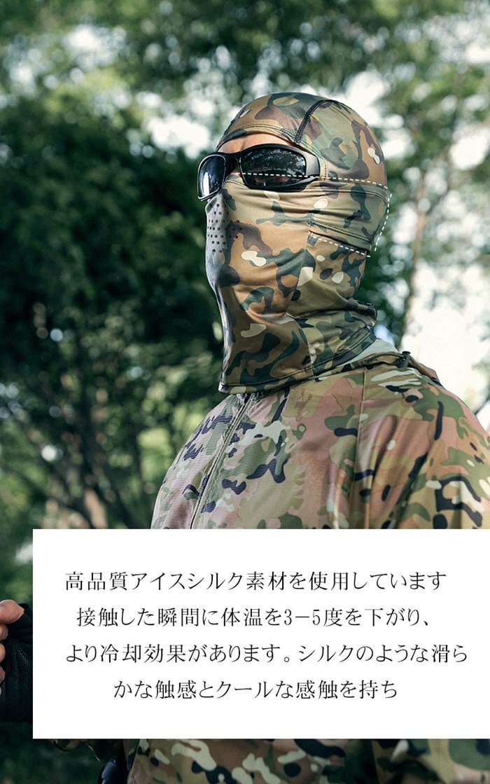 バラクラバ 夏用 冷感 フェイスカバー uvカット 日焼け防止 通気 息苦しくない 吸汗速乾 目出し帽 迷彩柄 自転車 バイク サイクリング ランニング 登山 釣り スポーツ