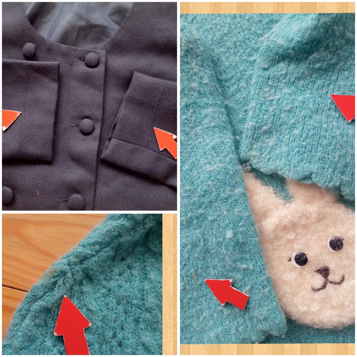 ・・・着用感と全体に毛羽立ち・シミ複数有