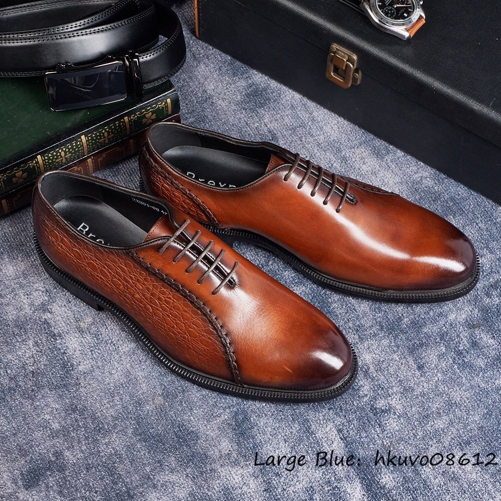 定価9万超◆最高級 ビジネスシューズ 本革 レザーシューズ 職人手作り イタリア 上質牛革 紳士靴 革靴 フォーマル ドレス ブラウン 24.5cm