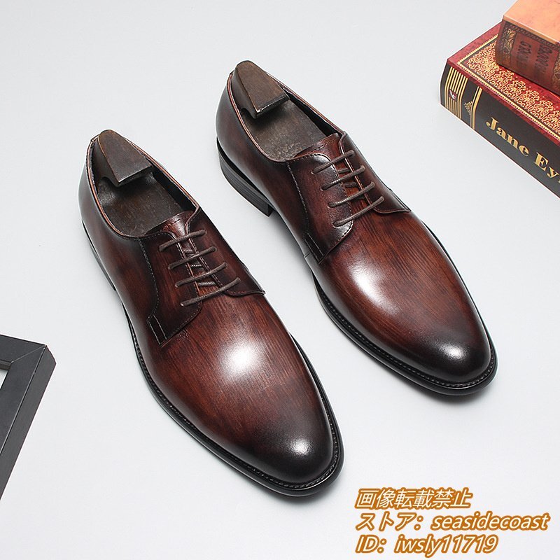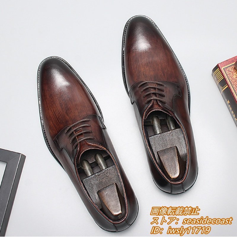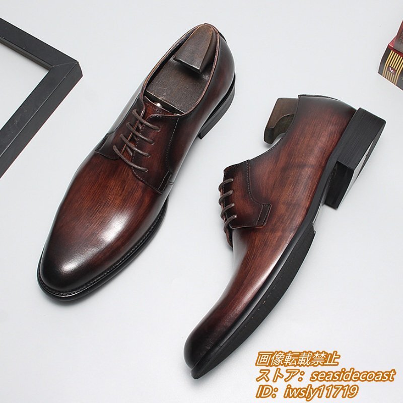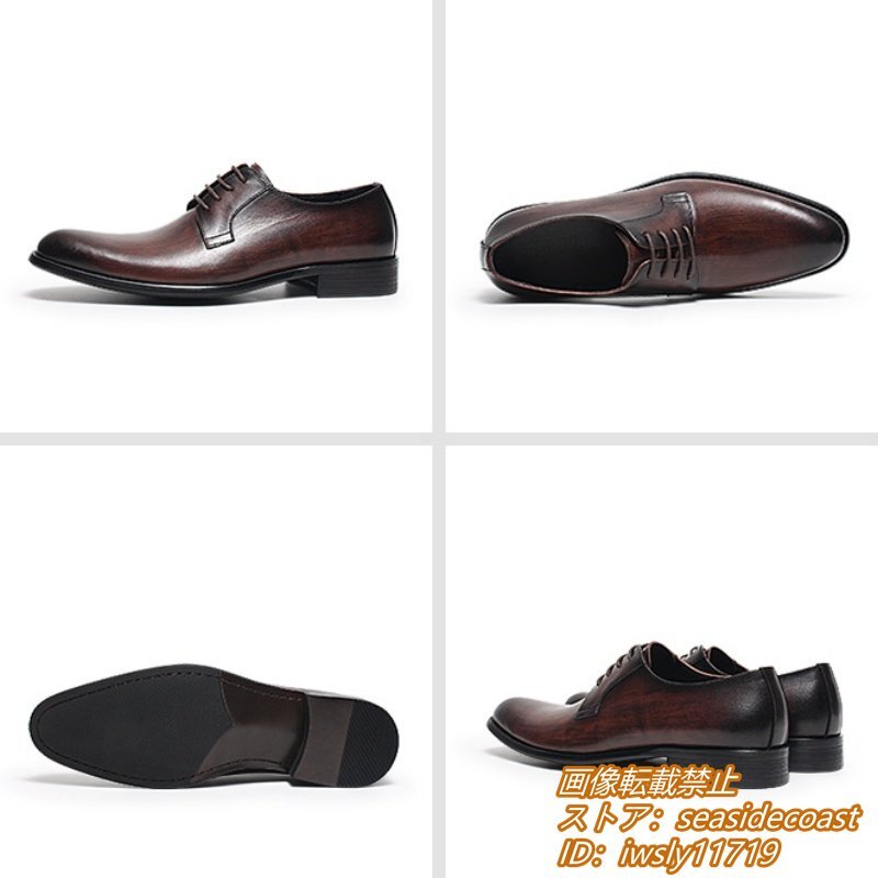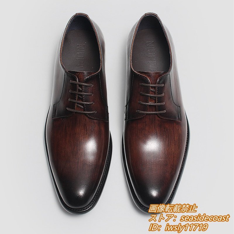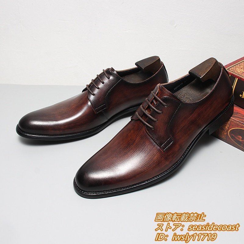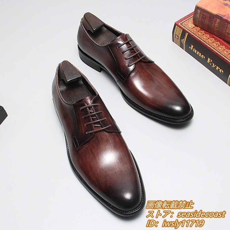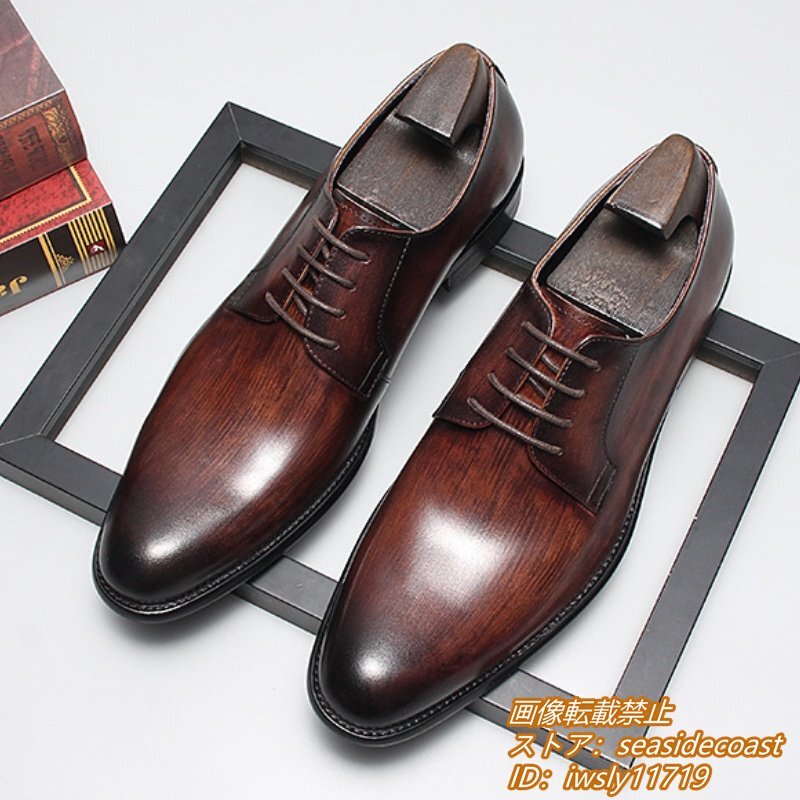 最高級◆新品 ビジネスシューズ 本革 メンズ ハンドメイド 手作り 牛革 レザーシューズ 革靴 フォーマル 紳士靴 結婚式 珈琲色 26.5cm