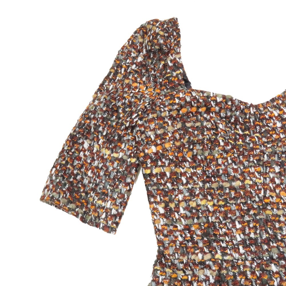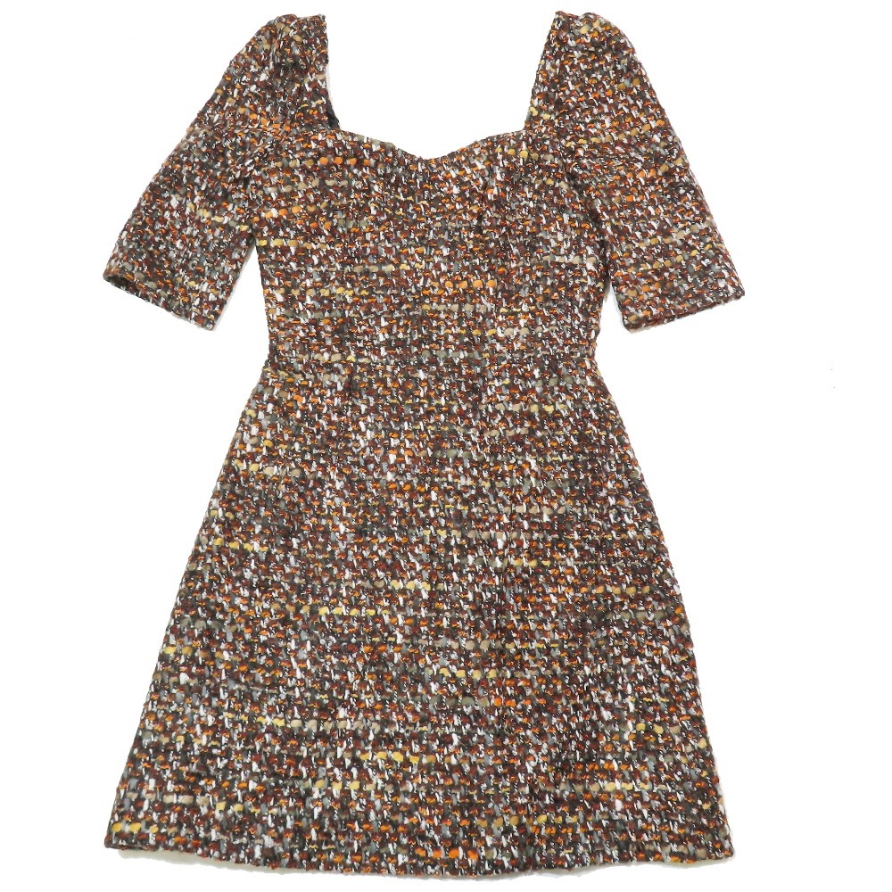 未使用 DOLCE&GABBANA ドルチェアンドガッバーナ ツイード 五分袖 ワンピース スクエアネック ショート フレアスカート 36 ブラウン