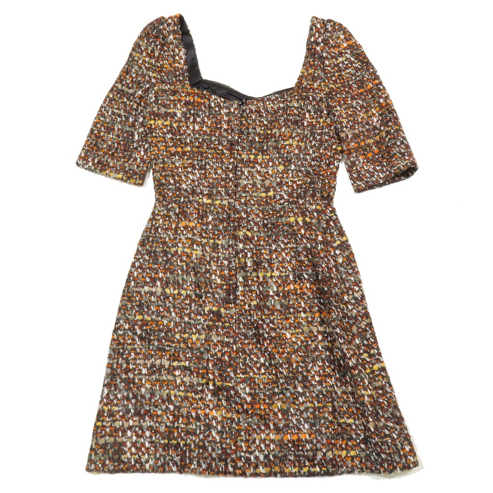 商品名:DOLCE&GABBANA ドルチェアンドガッバーナ ツイード 五分袖 ワンピース スクエアネック ショート フレアスカート 36 ブラウン